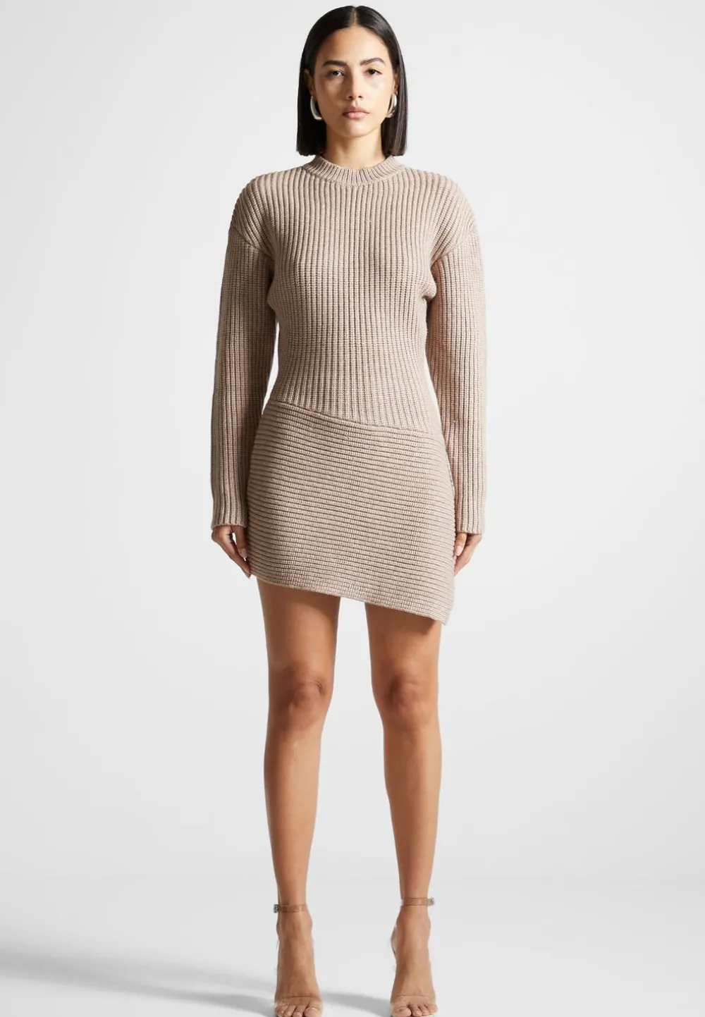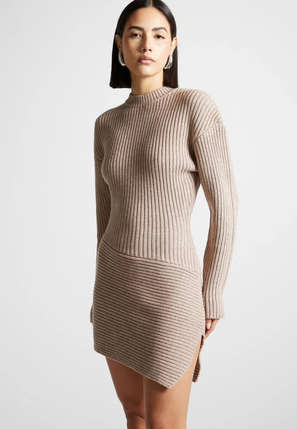 Look Stunning In The Asymmetric Knit Jumper Dress. Its Flattering Fit And Quality Knit Fabric Ensures That This Piece Is Comfortable And Stylish. Perfect For Any Occasion, This Dress Will Have You Standing Out In A Crowd.
