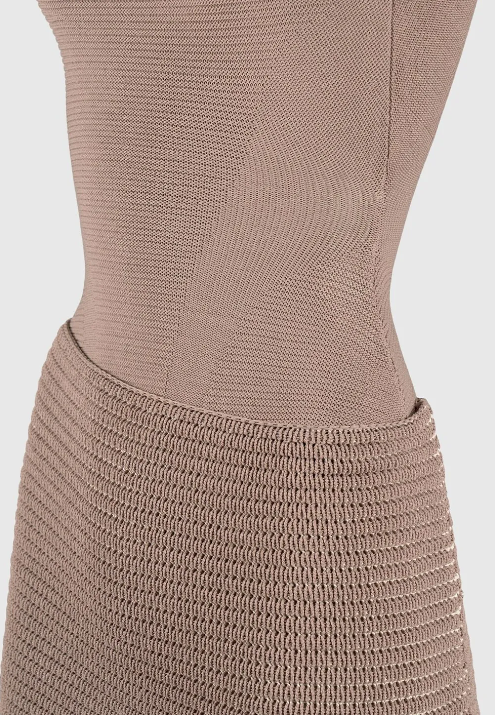 Expertly Designed With A Detachable Skirt For Versatile Style Options, This Asymmetric Knit Mini Dress Combines Fashion And Function. The Racer Neckline Adds A Touch Of Elegance While The Lightweight Fabric Ensures Maximum Comfort. Elevate Your Wardrobe With This Figure Flattering Dress.