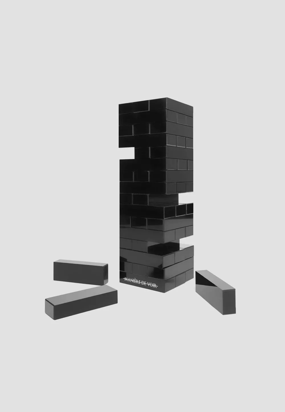 Gloss Finish Stacking Blocks With A Clear Acrylic Storage Box. One Block Is Branded With The Classic Manière De Voir Printed Logo. The Clean And Minimal Aesthetic Makes This A Great Decor Piece Even When It’s Not Being Played.Stack The Acrylic Blocks In A Sturdy Tower, Then Take Turns Pulling Out Blocks One By One Until The Stack Falls. Win By Being The Last Player To Remove A Block Without Causing The Fall. Recommended For Age 5+.