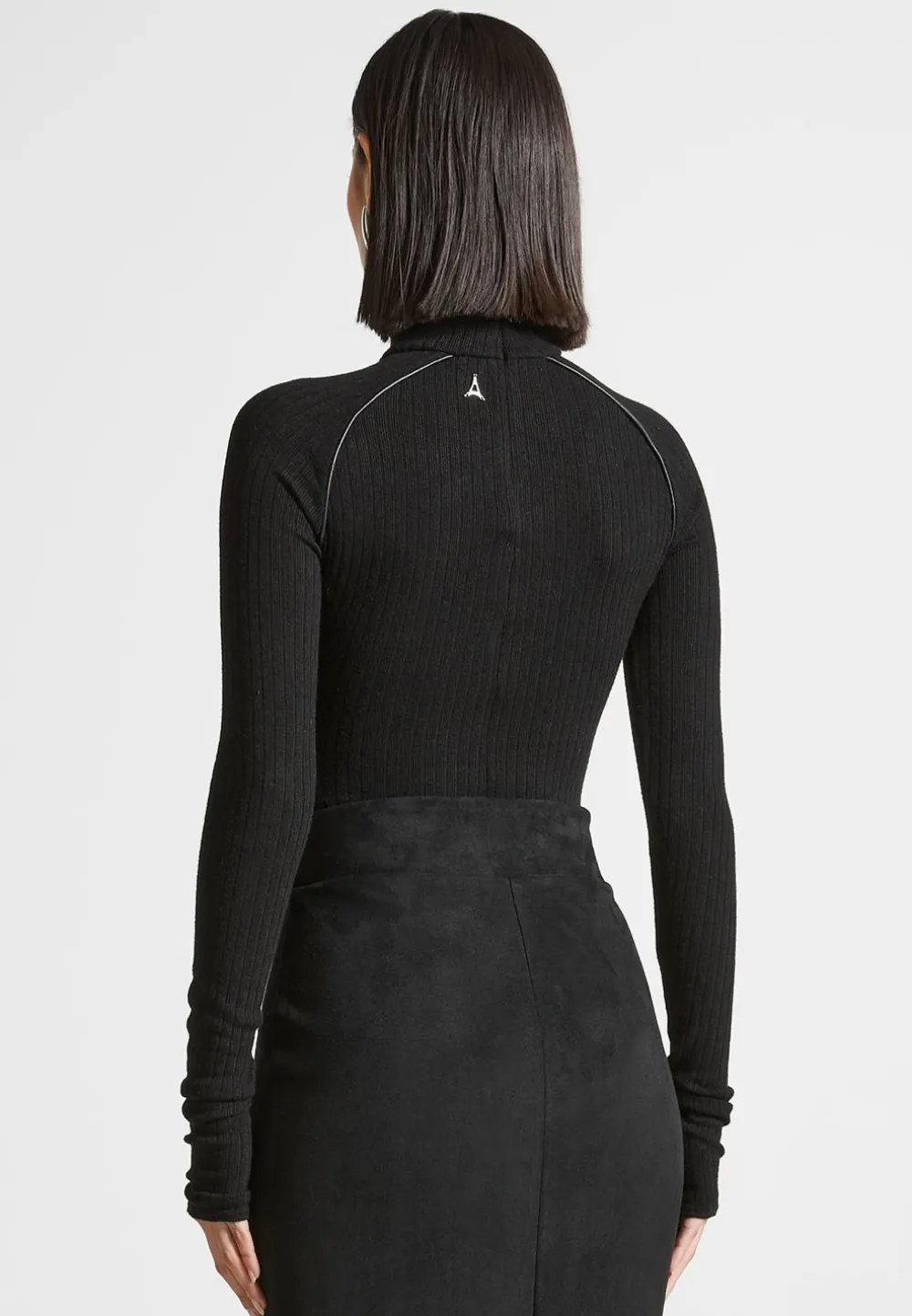 This Rib Bodysuit Is Made From Lightweight Fabric And Features A High Neckline And Unique Contour Detailing For An Elevated Look. Perfect For Any Occasion, This Classic Piece Is Sure To Become A Wardrobe Staple.