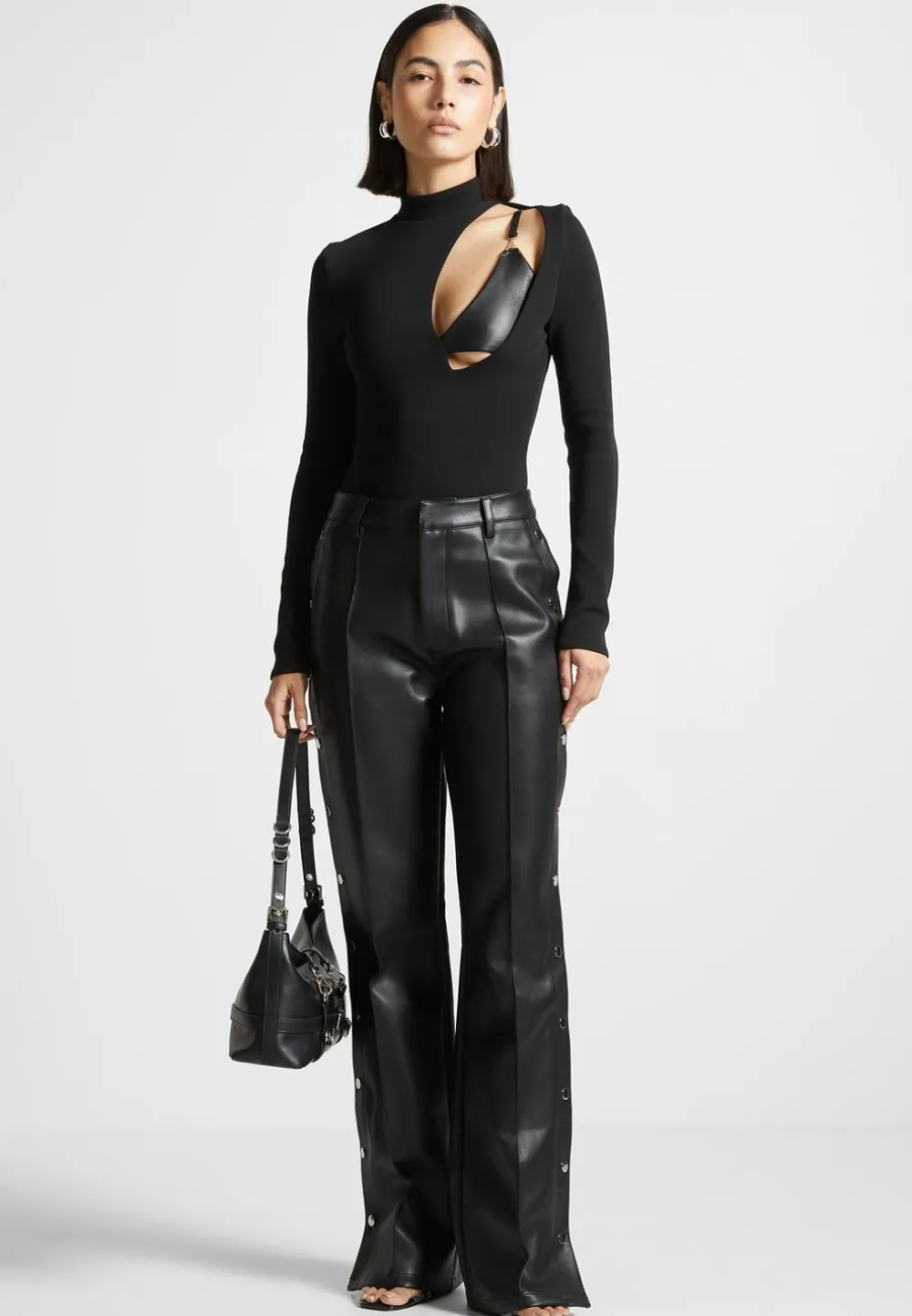This Cut Out Bralette Detail Bodysuit Is Sure To Make A Statement. Its Unique Design And Sleek Silhouette Make It A Great Choice For A Night Out. It Provides An Effortless And Stylish Look That Will Turn Heads.