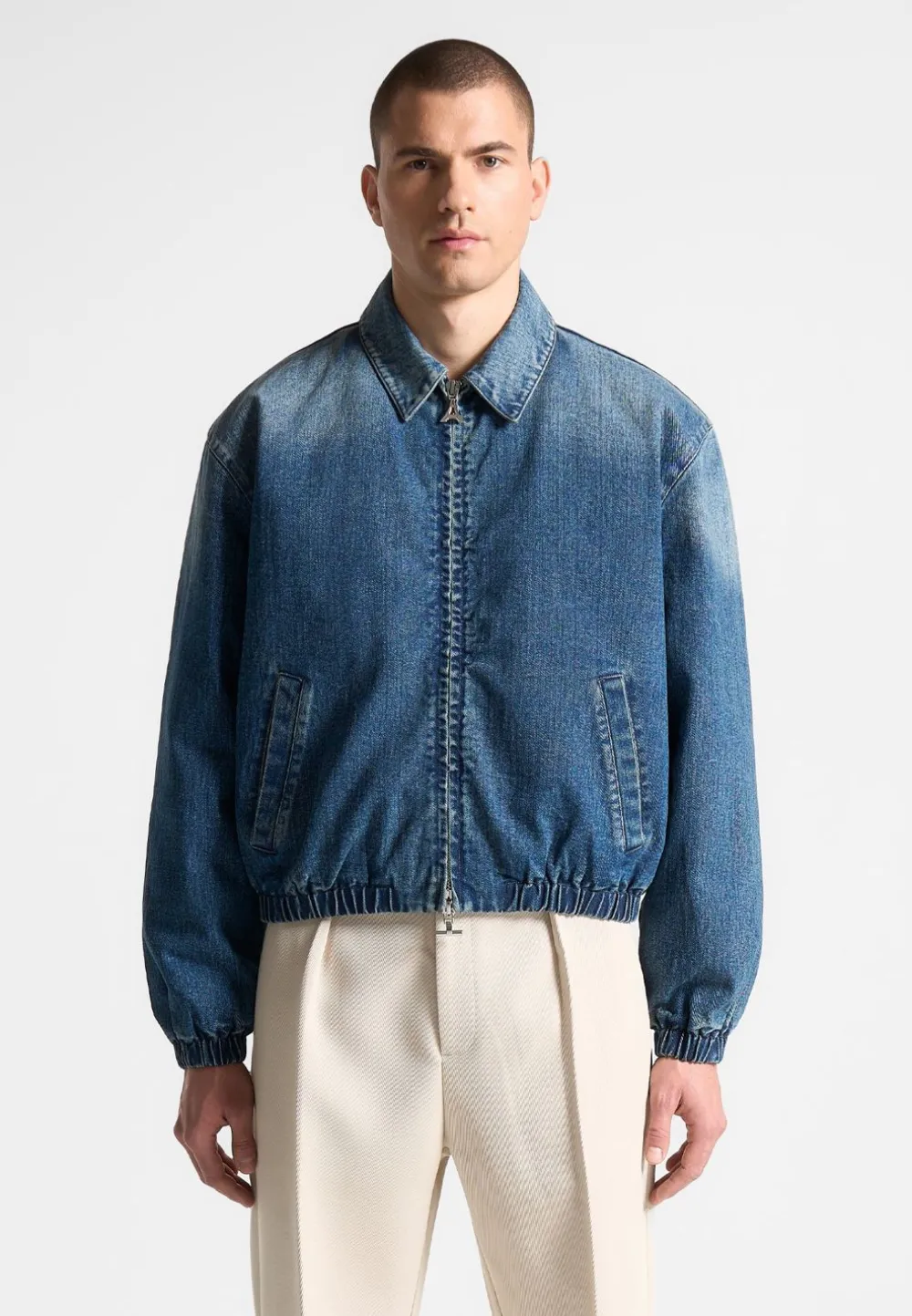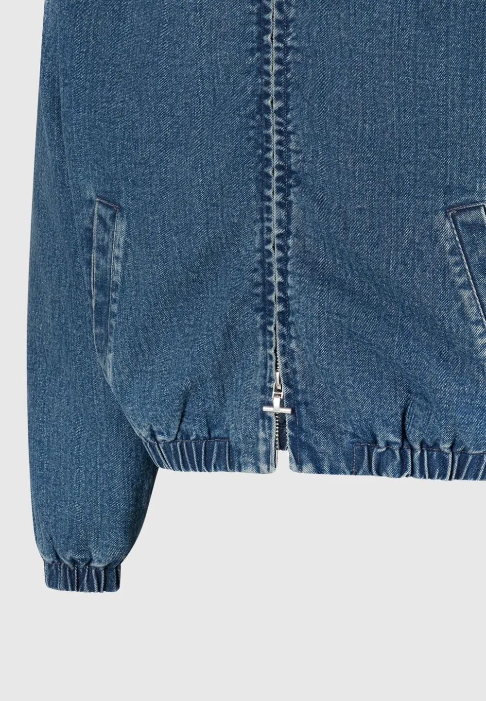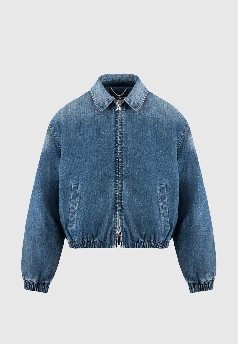 Introducing Our New Denim Padded Cropped Bomber Jacket – The Perfect Addition To Your Wardrobe. With A Relaxed Fit And Washed Denim Fabric, This Jacket Seamlessly Transitions From Day To Night. Stay Stylish And Smart With This Versatile Piece.