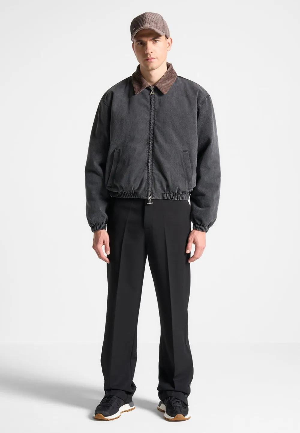 Introducing Our New Denim Padded Cropped Bomber Jacket – The Perfect Addition To Your Wardrobe. With A Relaxed Fit And Washed Denim Fabric, This Jacket Seamlessly Transitions From Day To Night. Stay Stylish And Smart With This Versatile Piece.