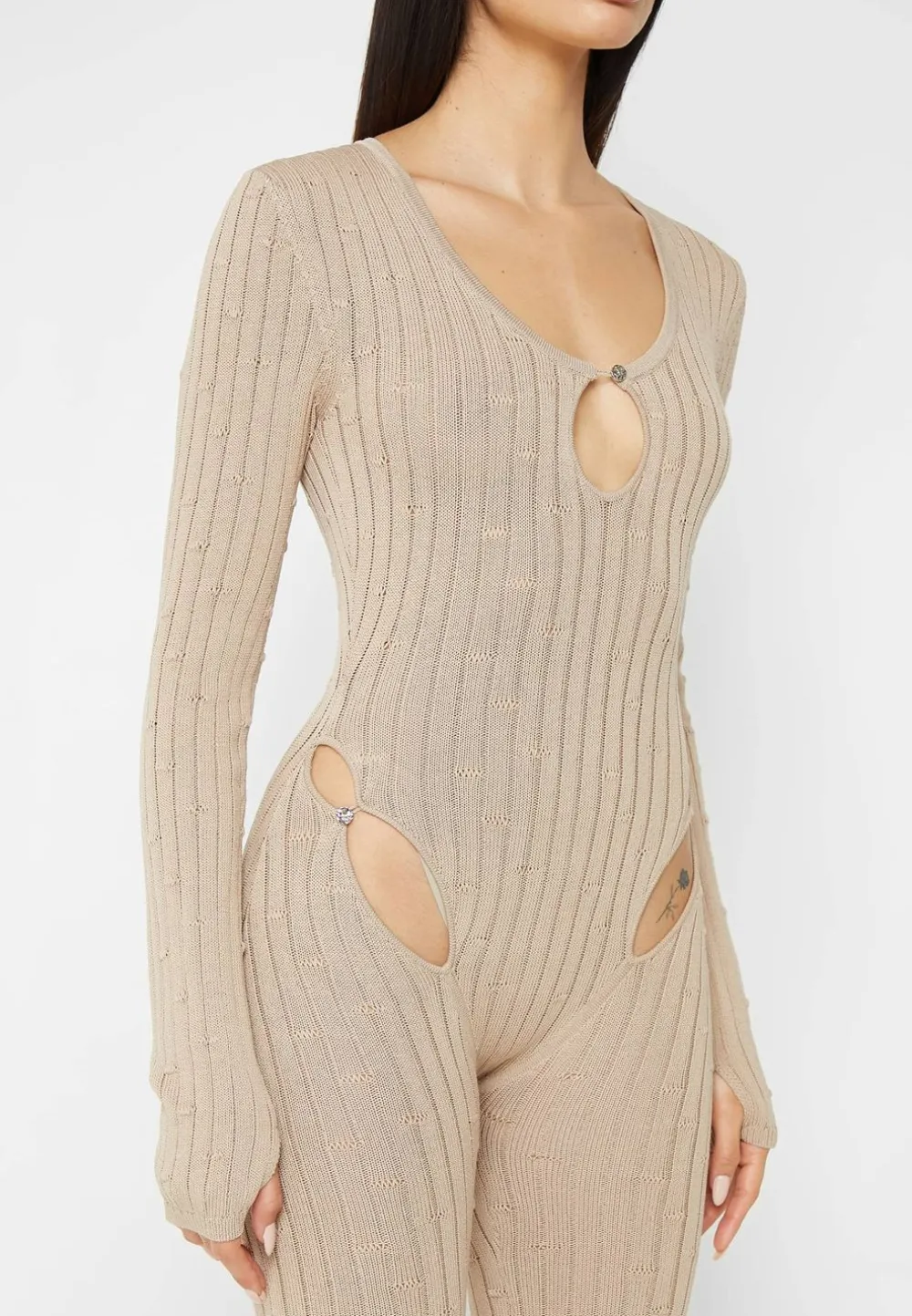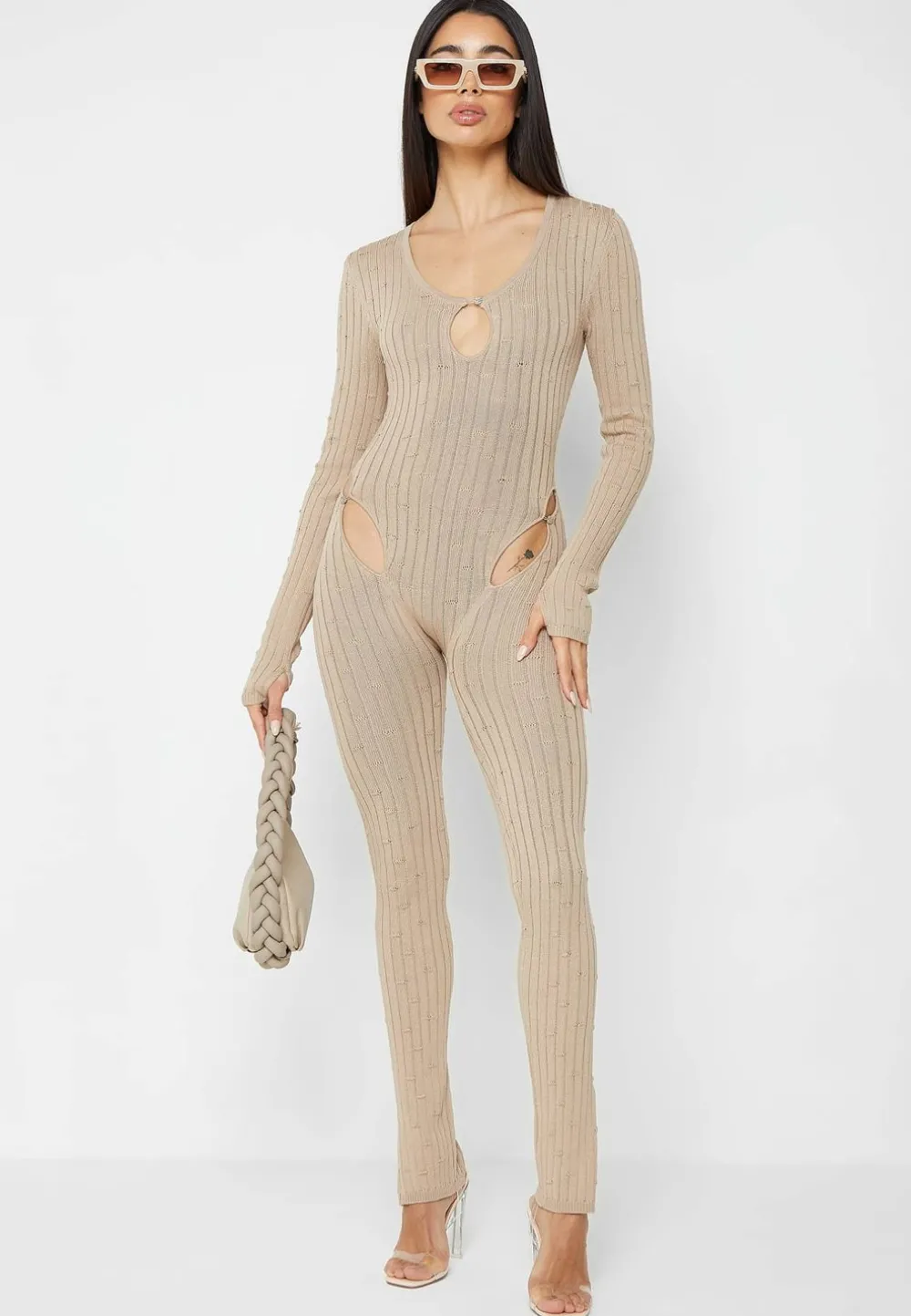 The Cut Out Detailing Adds A Sexy Feature To This Jumpsuit While The Subtly Distressed Fabric Adds A Slight Casual Feel To The Jumpsuit Making It Perfect For Day To Night Occasions.