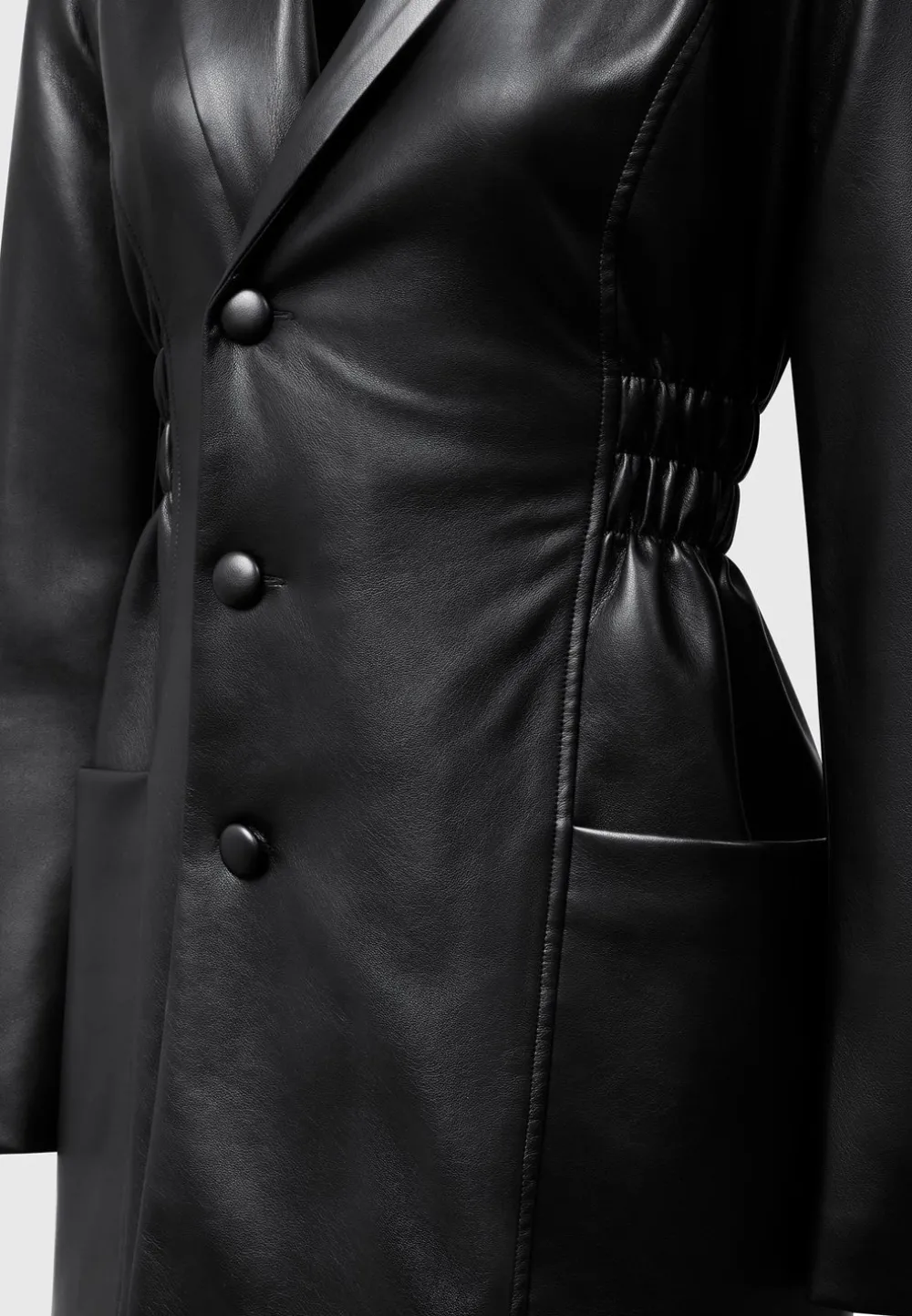 Wear A Sleek Yet Timeless Look With This Double Breasted Vegan Leather Blazer Dress. A Cinch Waist And Classic Design Add A Touch Of Sophistication, Allowing You To Make A Statement Without Compromising On Style. Dress It Up For The Office Or Special Events For A Polished Look.