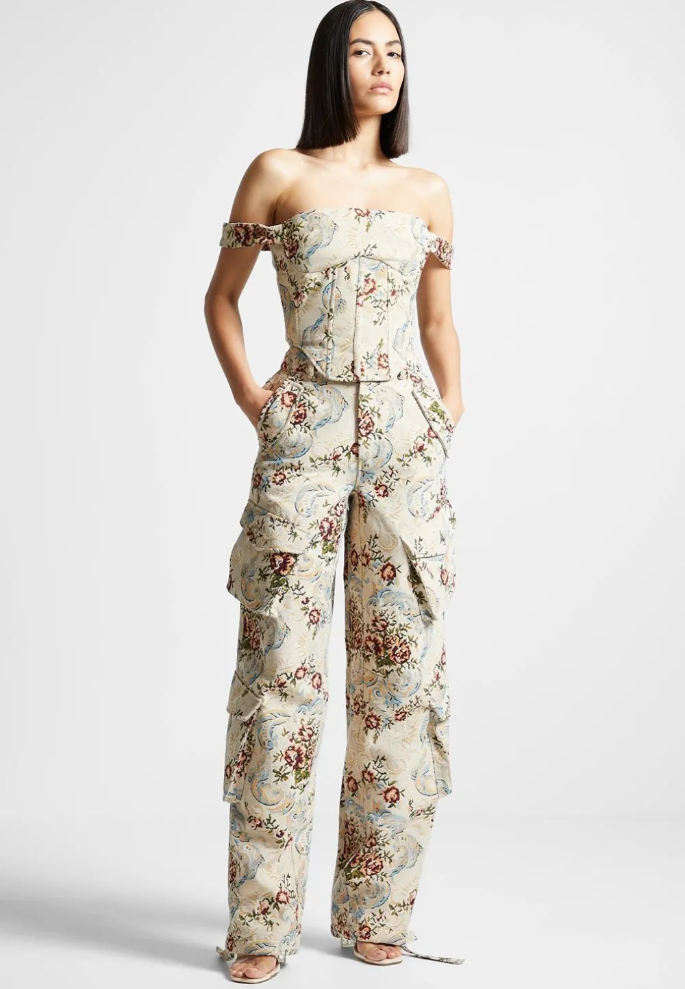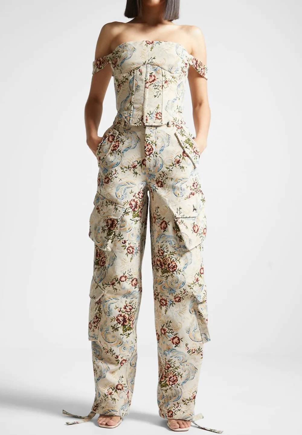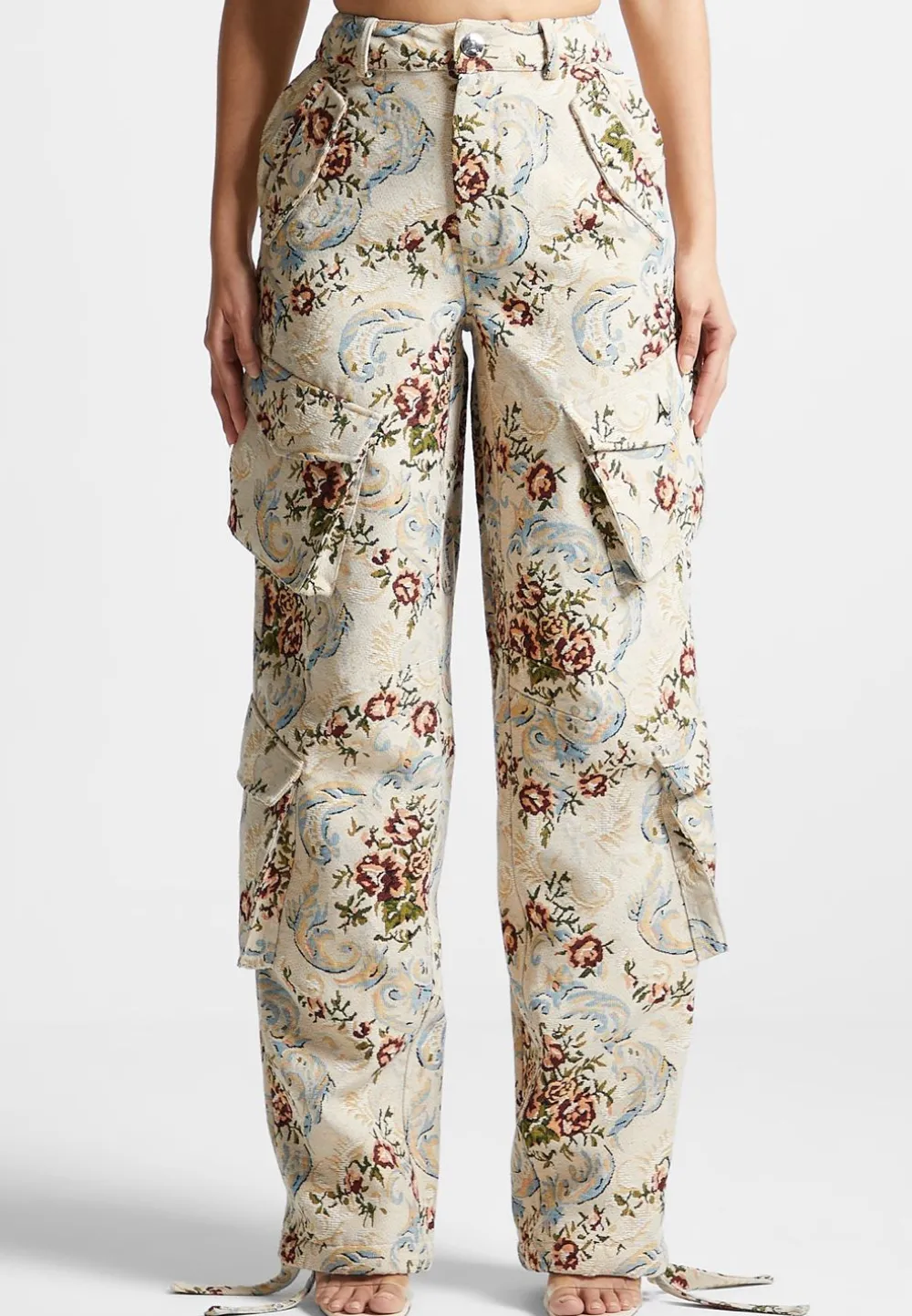 Look Stylish In These High Waisted Cargo Pants! Crafted With Floral Jacquard Fabric, They Feature 3D Cargo Pockets For A Trendy And Comfortable Fit. Perfect For A Casual Yet Stylish Everyday Look.