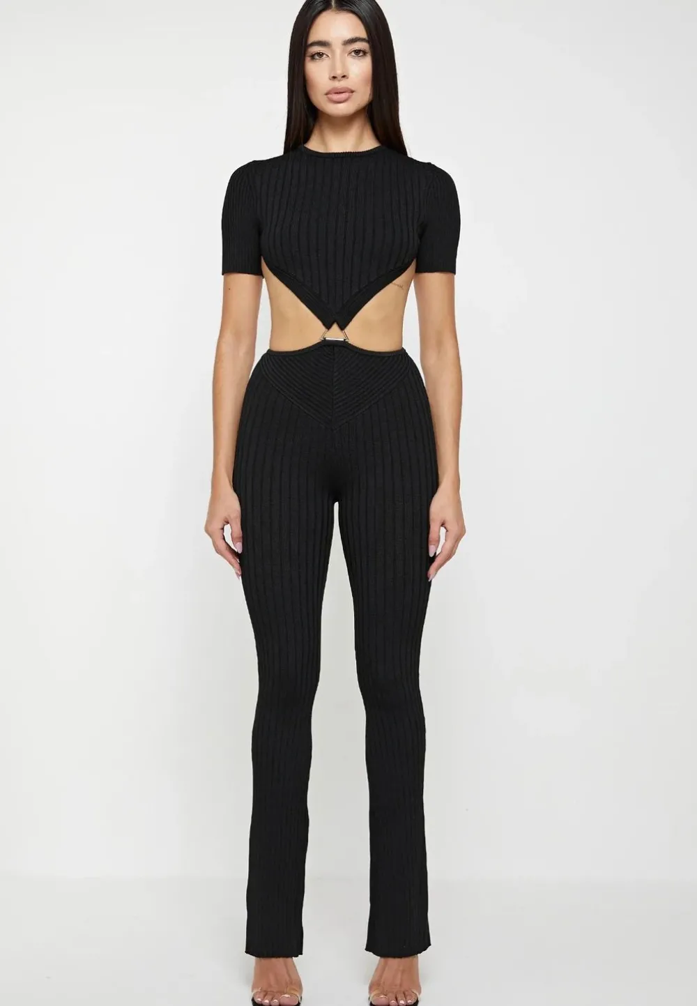 Perfect For Nights Out, This Jumpsuit Features An Exposed Back And Carefully Placed Contour Panels At The Waist To Mimic A Cinched Waist.
