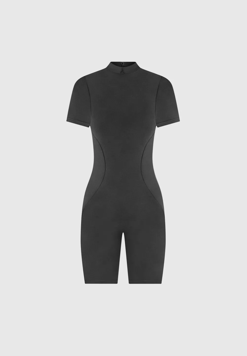 This Mock Neck Playsuit Features A Sleek Mock Neck And Contour Lines, Creating A Sleek And Stylish Silhouette Perfect For Any Occasion. With Its Timeless Design And Precise Lines, You Can Be Sure To Look Your Best With Minimal Effort.