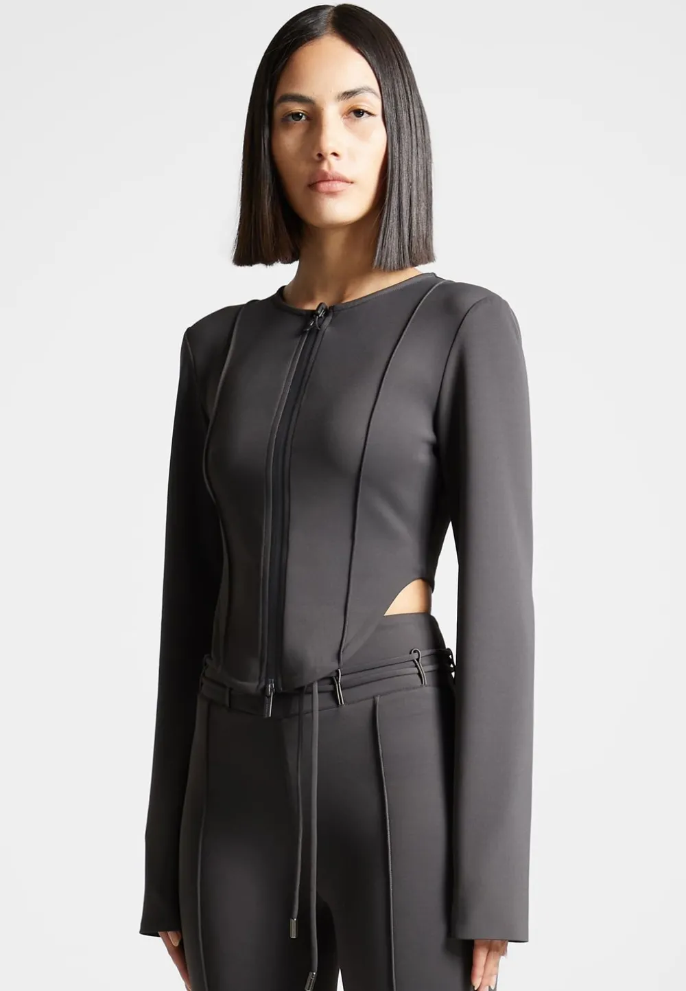 This Neoprene Corset Jacket Adds A Figure-Flattering Silhouette To Any Look, All While Providing Lightweight Comfort. The Slim-Cut Shape Complements Any Body Type, Allowing You To Make A Bold Style Statement. With Its Fashionable Design, This Jacket Is Perfect For Any Occasion.
