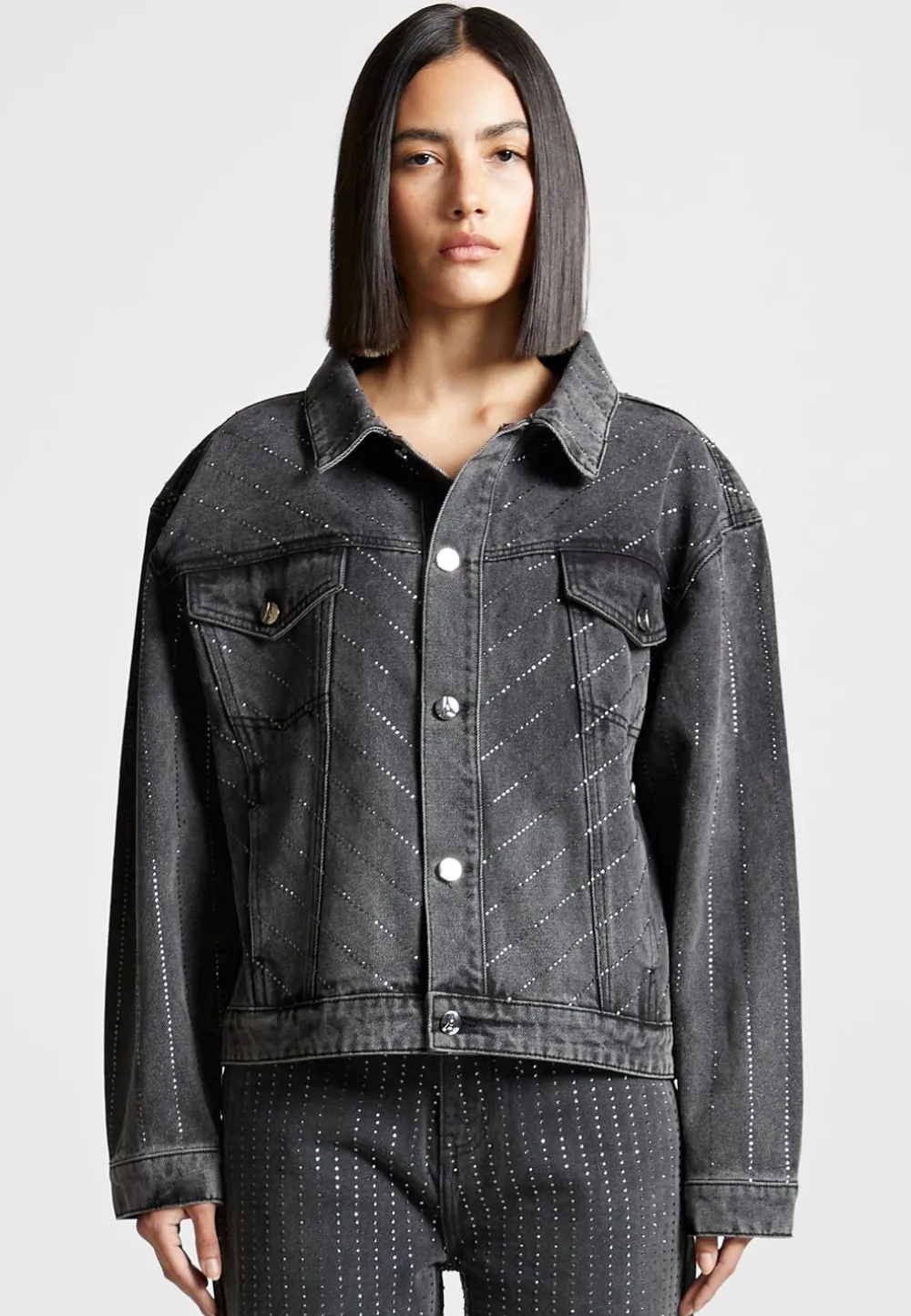 Add A Little Sparkle To Any Outfit With This Oversized Rhinestone Denim Jacket. Perfect For Casual Or Special Occasions, Its Timeless Silhouette And Glittering Accents Will Help You Stand Out And Make A Statement. Soft And Comfortable, Its Oversized Fit Allows You To Dress It Up Or Down For Any Occasion.