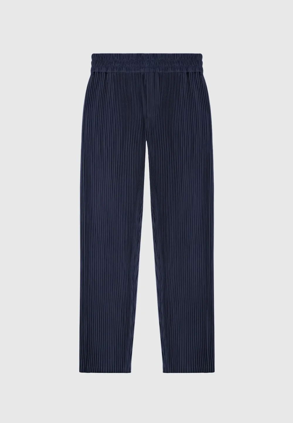 Expertly Crafted With Breathable Fabric, These Navy Pleated Trousers Offer Both Style And Comfort. The Relaxed Fit Is Perfect For All-Day Wear, While The Elasticated Waistband Ensures A Comfortable And Secure Fit. Experience The Perfect Combination Of Fashion And Functionality With These Trousers.