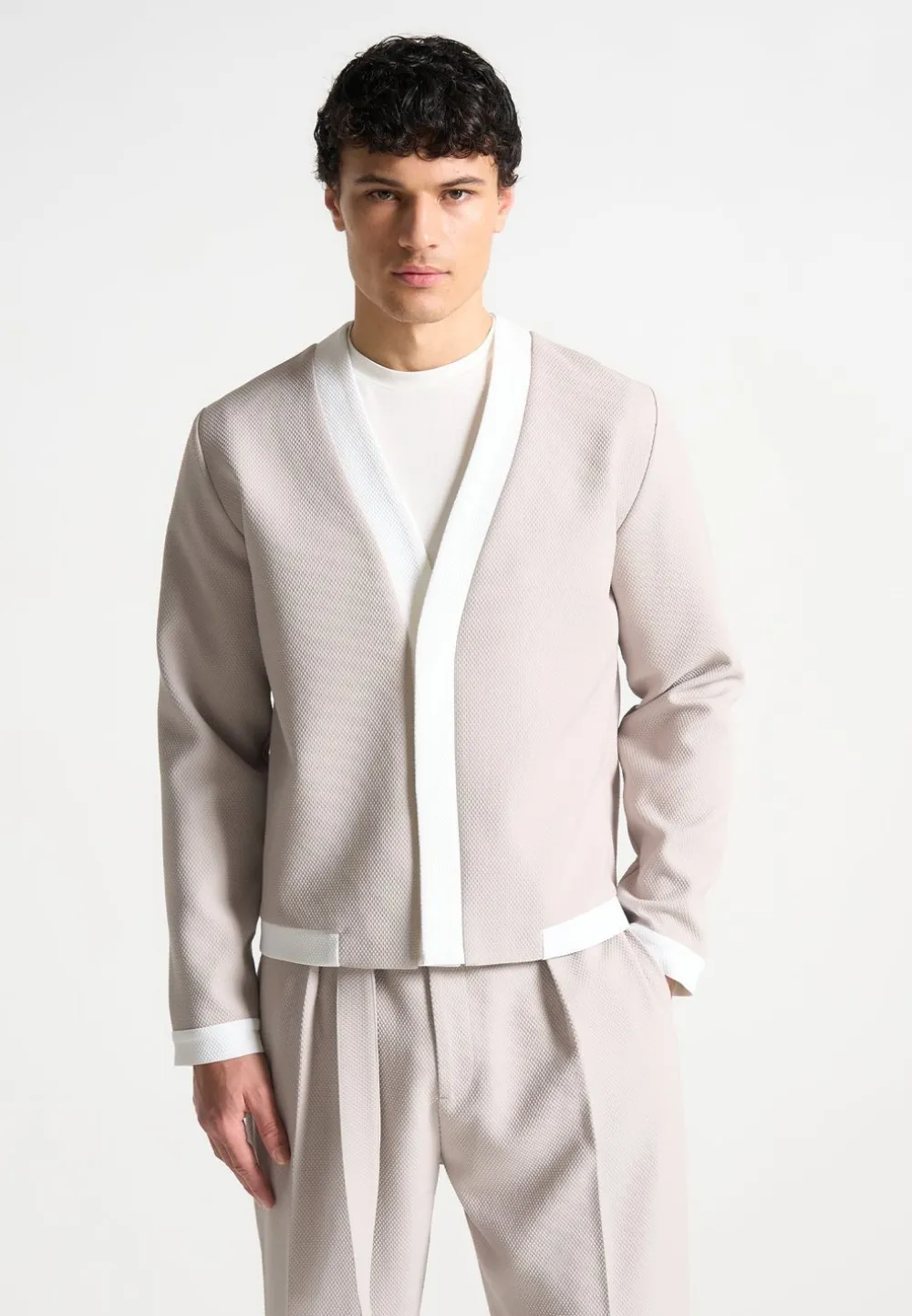 The Textured Contrast Cardigan Is A Timeless Staple For Any Discerning Wardrobe. With Textured Fabric, Long Sleeves And A Regular Fit, This Style Offers Both Comfort And Versatility. Designed To Elevate Any Look, This Cardigan Is Perfect For Both Casual And Formal Occasions.