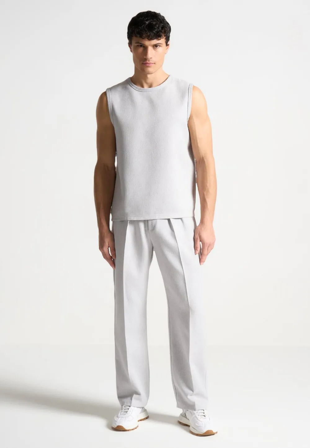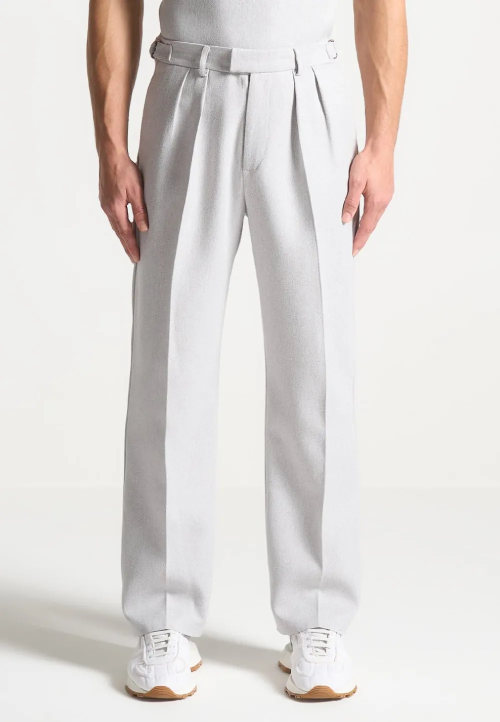Elevate Your Wardrobe With Our Textured Tailored Trousers In Grey, Offering A Relaxed Fit For Enduring Comfort Throughout The Day. With Side Slip Pockets And A Pleat To Crease Detail, These Trousers Effortlessly Blend Practicality With Style. Perfect For Both Smart Casual And Formal Occasions, These Versatile Trousers Are A Must-Have Addition To Your Collection.