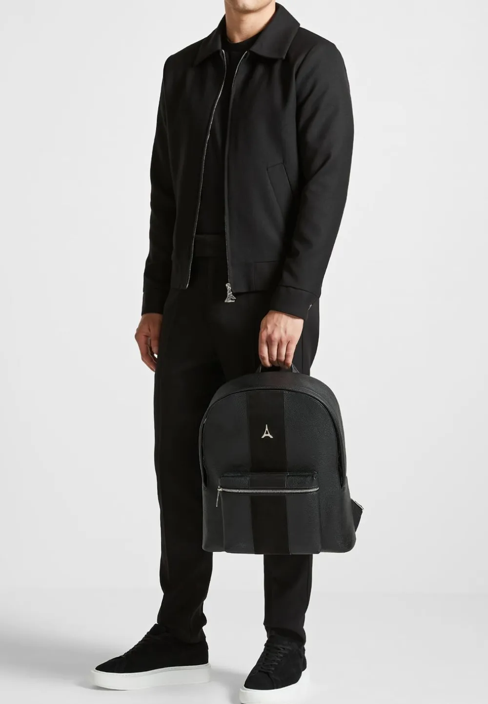Made With Vegan Leather And A Suede Front Panel, This Black Backpack Is A Stylish And Ethical Choice. With Silver Hardware For Added Durability And Style, This Backpack Is Perfect For Any Occasion.