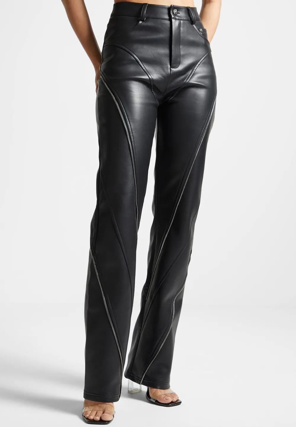 These Edgy Vegan Leather Biker Trousers With Zips Are Perfect For Day-To-Night Styling. Their Sleek Straight Leg Make Them Both Cool And Versatile, Perfect For Any Wardrobe. Crafted From Premium Materials, These Trousers Are A Sustainable And Ethical Choice.