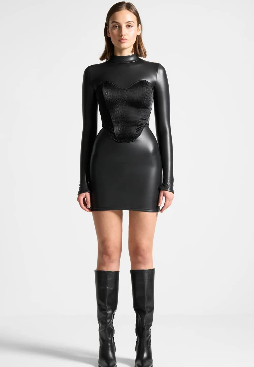 This Black Corset Overlay Dress Is Perfect For Your Next Night Out. Designed With A Figure-Accentuating Corset, It Will Flatter And Hug Your Curves. This Dress Provides A Unique And Modern Twist To The Classic Mini Dress Silhouette.
