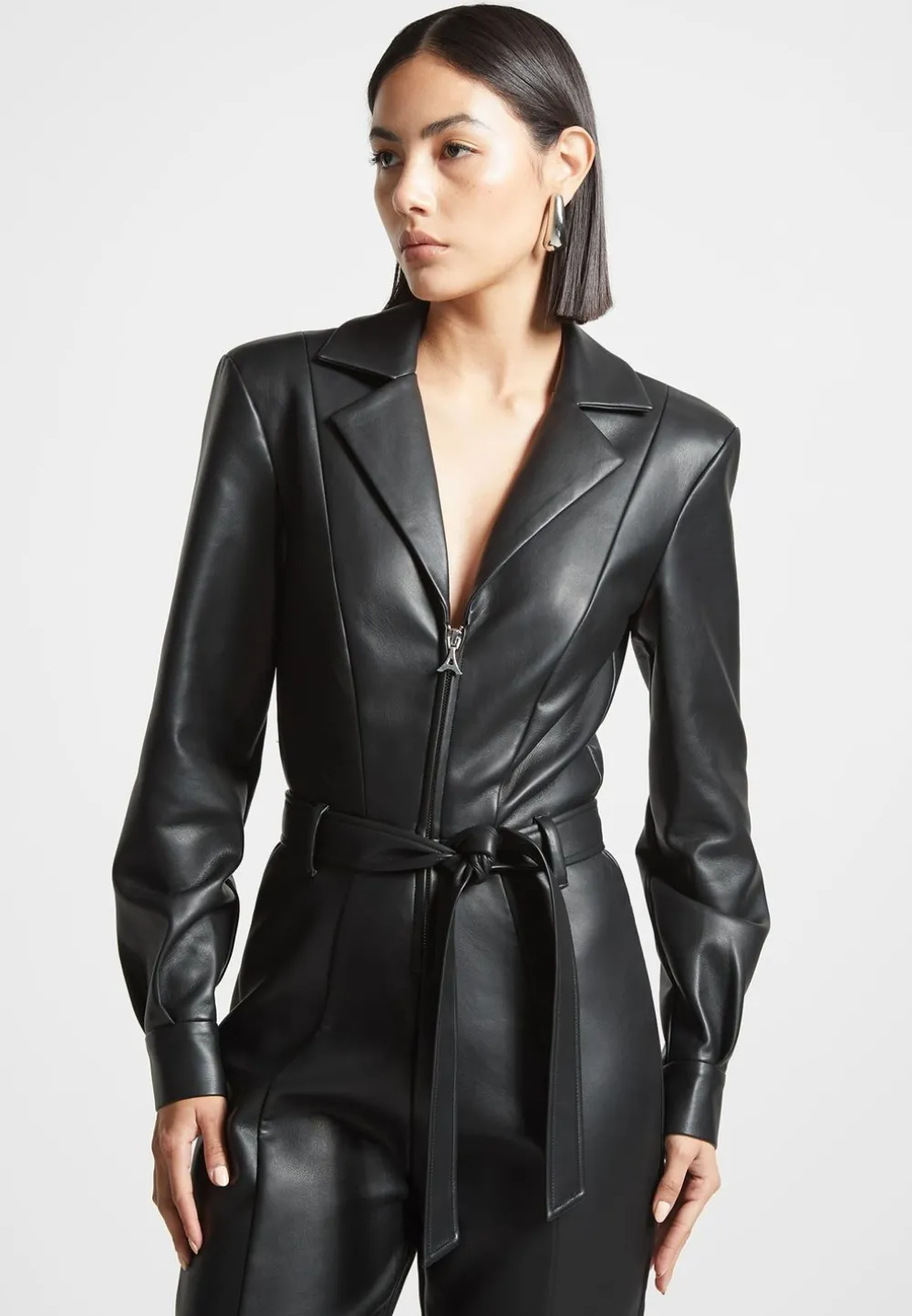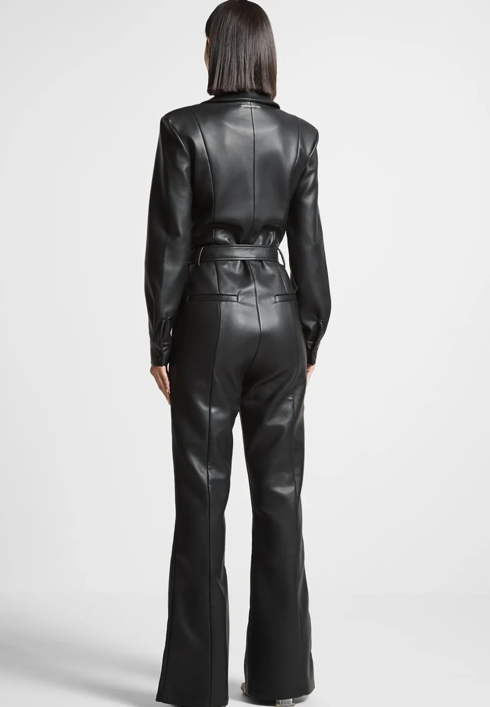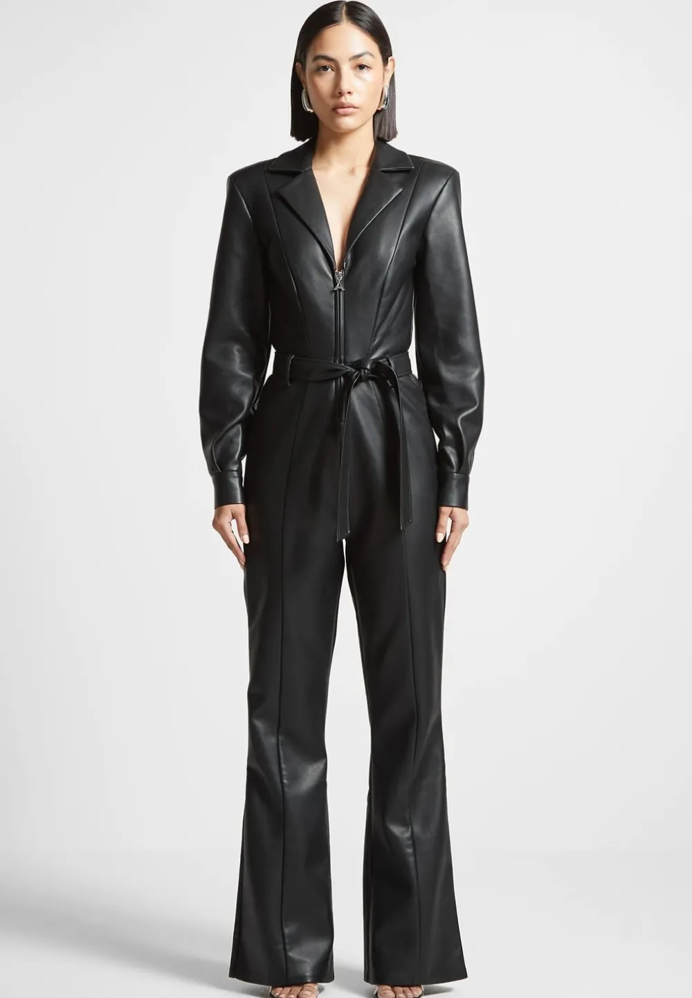 This Stylish Jumpsuit Offers A Tailored Fit And Flare Leg Silhouette To Give You An Effortlessly Chic Look. Made With Vegan Leather, You’Ll Look Fabulous While Still Being Conscious Of Your Fashion Choices.