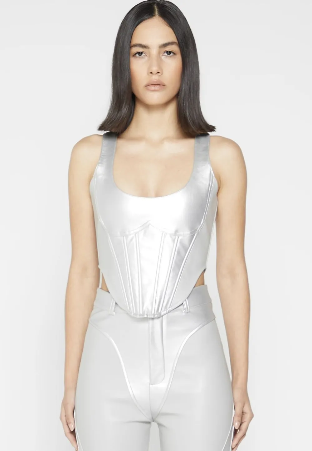 All Eyes Will Be On You With This Vegan Leather Metallic Set. The Slim Fit Combined With The Contrast Panelling Creates A High Fashion Look Desirable For Any Occasion.