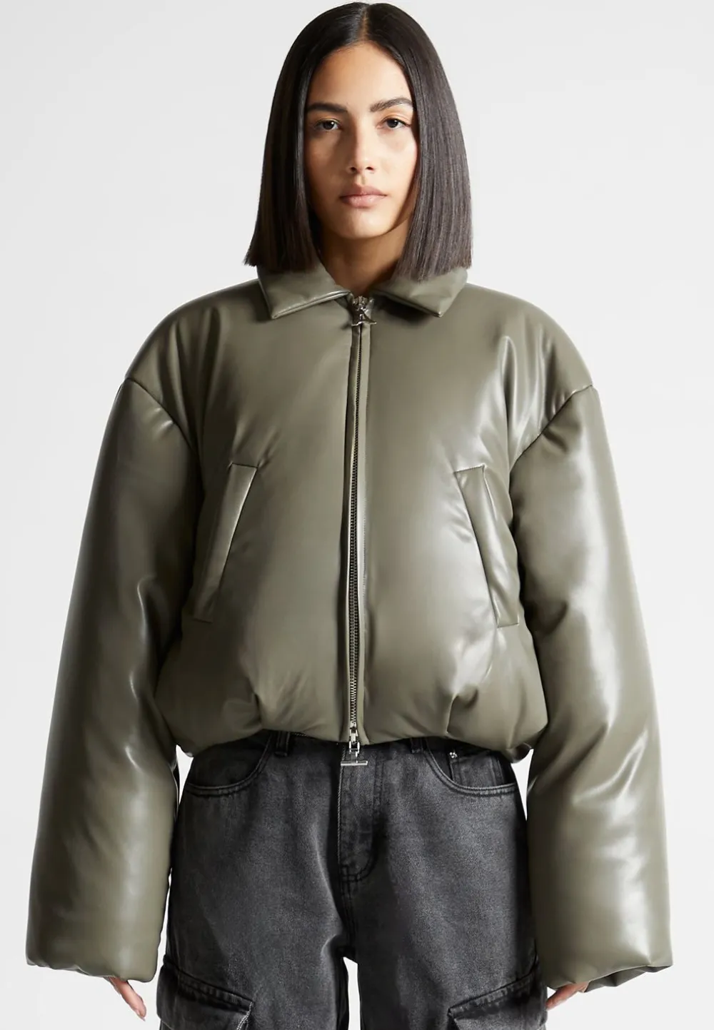 Look Stylish And Stay Warm In This Vegan Leather Bomber Jacket. The Large Silhouette Provides Envious Comfort, While The Smooth Feel Ensures A Luxurious Wearing Experience. Nail The Perfect Fashionable Look With This Sophisticated And Stylish Jacket.