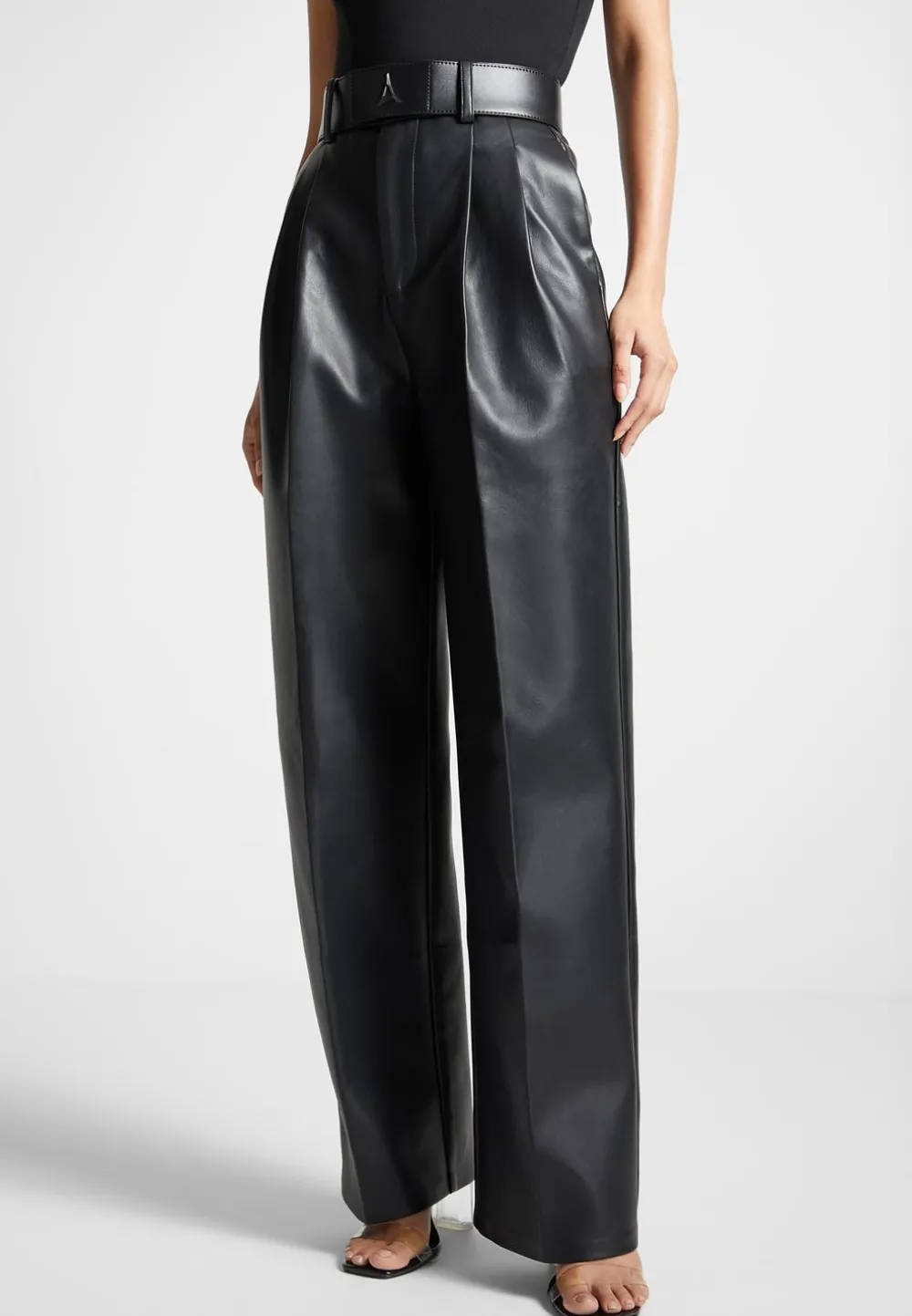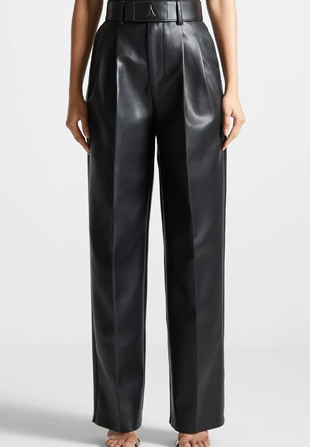 Our Vegan Leather Pleated Trousers With Eiffel Belt Are Designed For A Flattering Fit And Stylish Look. The Classic Pleated Design Make These Trousers Perfect For Day Or Night. An Excellent Choice For The Confident And Fashionable.