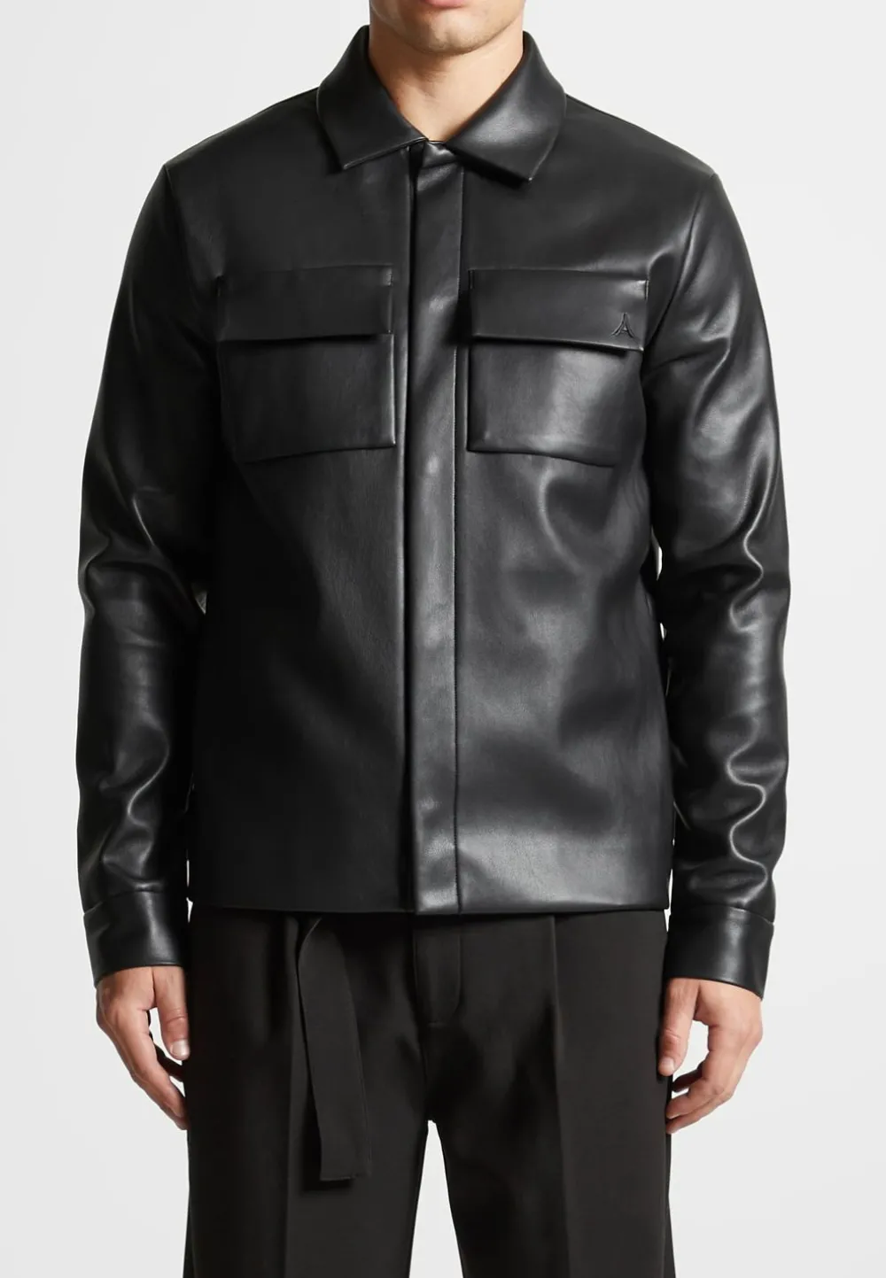This Vegan Leather Shirt Jacket Is The Perfect Blend Of Style And Practicality. Its Heavy-Weight Construction Provides A Long-Lasting And Durable Wear. It Is Perfect For Cooler Weather And Pairs Perfectly With Our Belted Trousers.