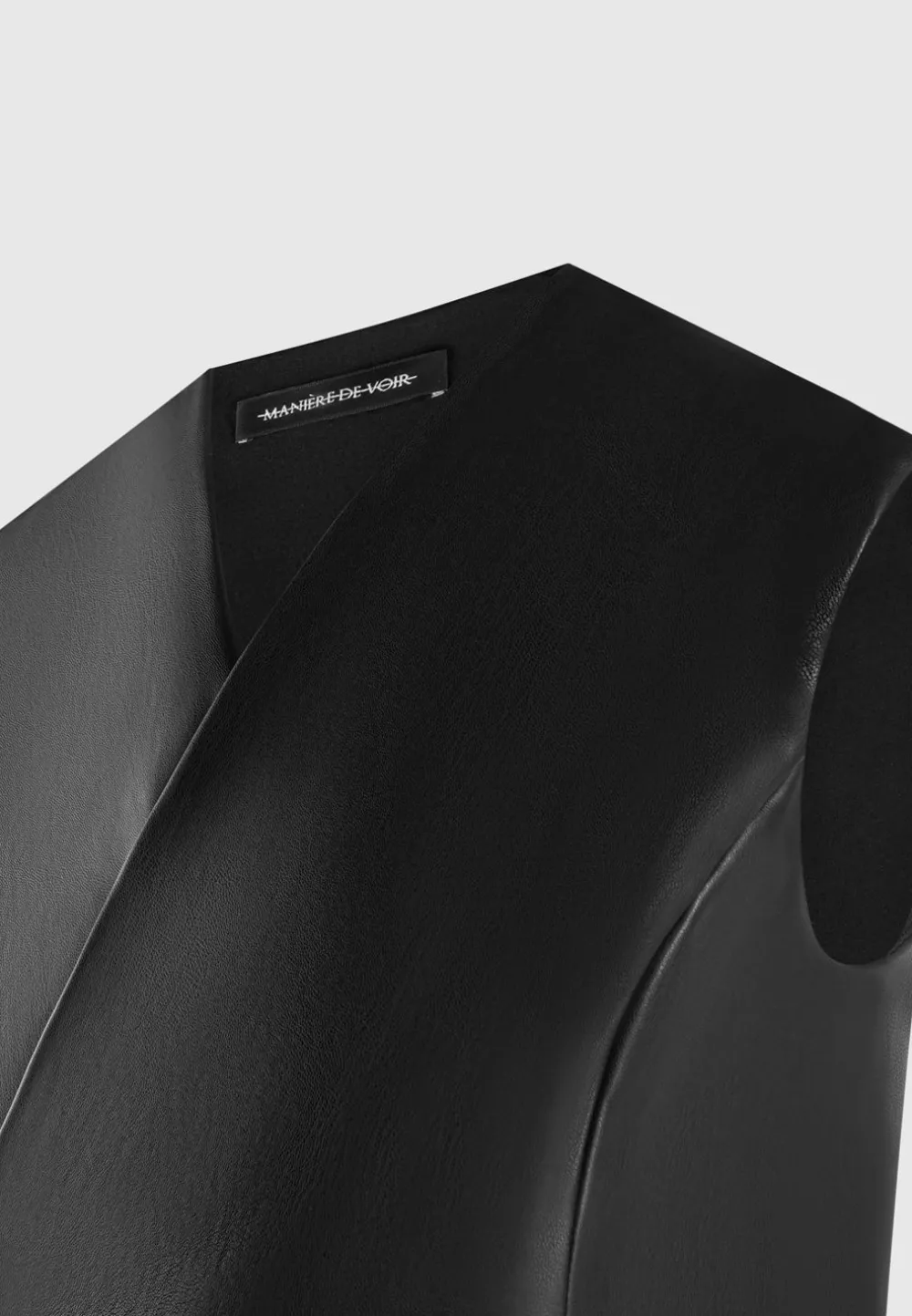 This Vegan Leather Waistcoat Features A Wrap Silhouette With Concealed Buttons For A Tailored, Sleek Look. Perfect For Office-Wear Or Special Occasions, This Tailored Wrap Waistcoat Pairs Well With Any Outfit To Add A Tailored Touch.