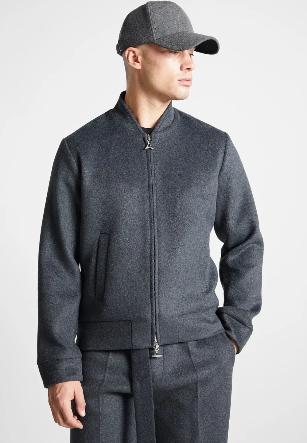 Featuring A Bomber Silhouette, This Wool Blend Marl Bomber Jacket In A Staple Charcoal Grey Is The Perfect Way To Stay Warm In Ultimate Comfort And Style. Crafted From A Sumptuous Wool Blend. Complete The Look With Our Wool Belted Trousers.
