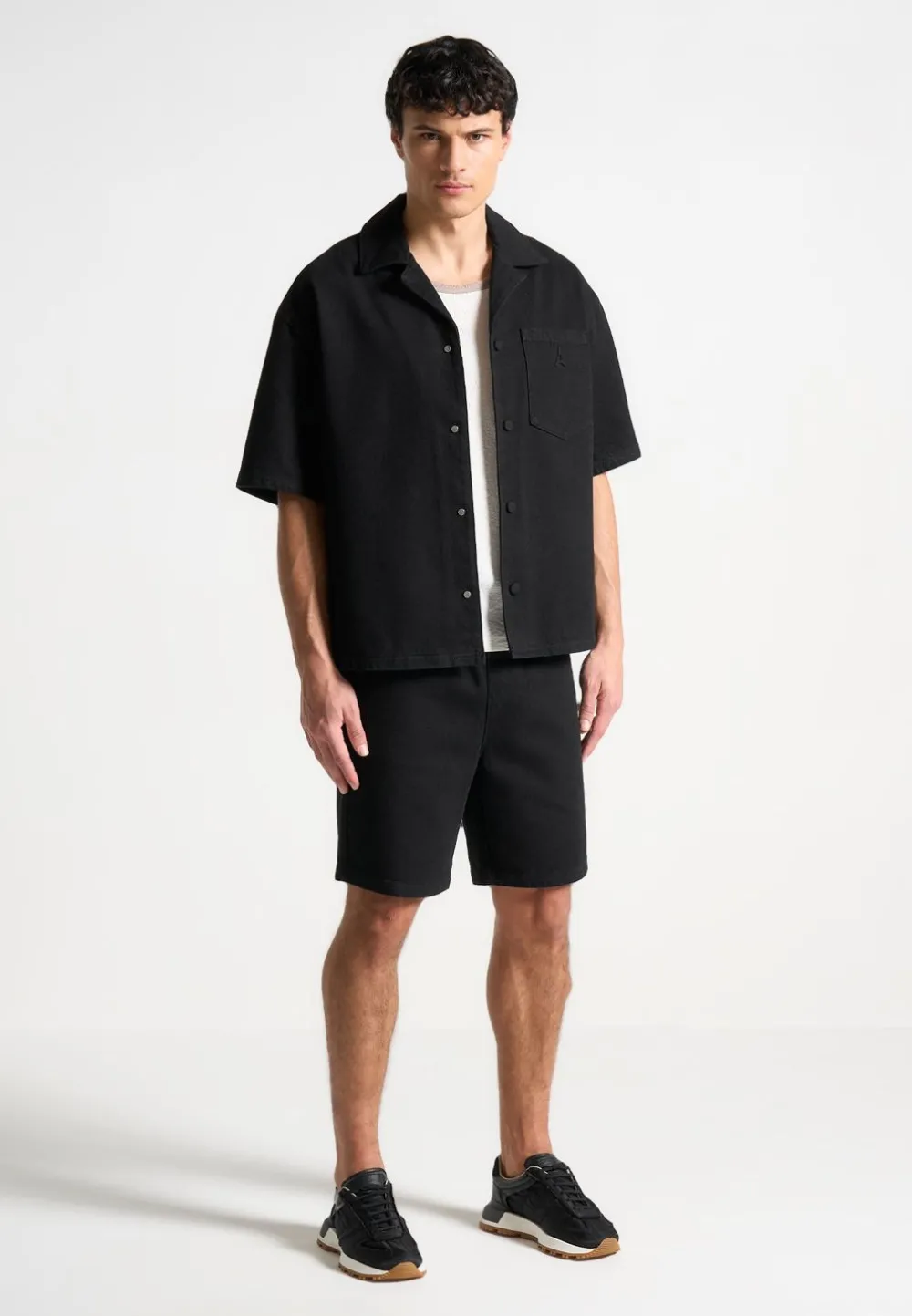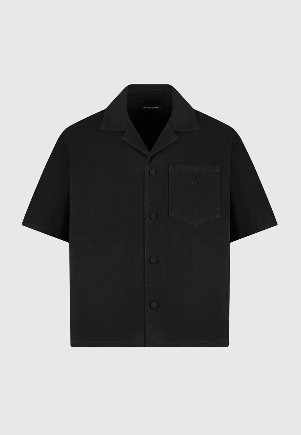 The Boxy Denim Revere Shirt Is Expertly Crafted From A Structured Denim Material, Ensuring A Loose Yet Stylish Fit. Its Unique Revere Collar And Subtle Fabric-Covered Poppers Add A Refined Detail To The Design, While The Embossed Eiffel Logo And Front Pocket Offer A Blend Of Functionality And Style.