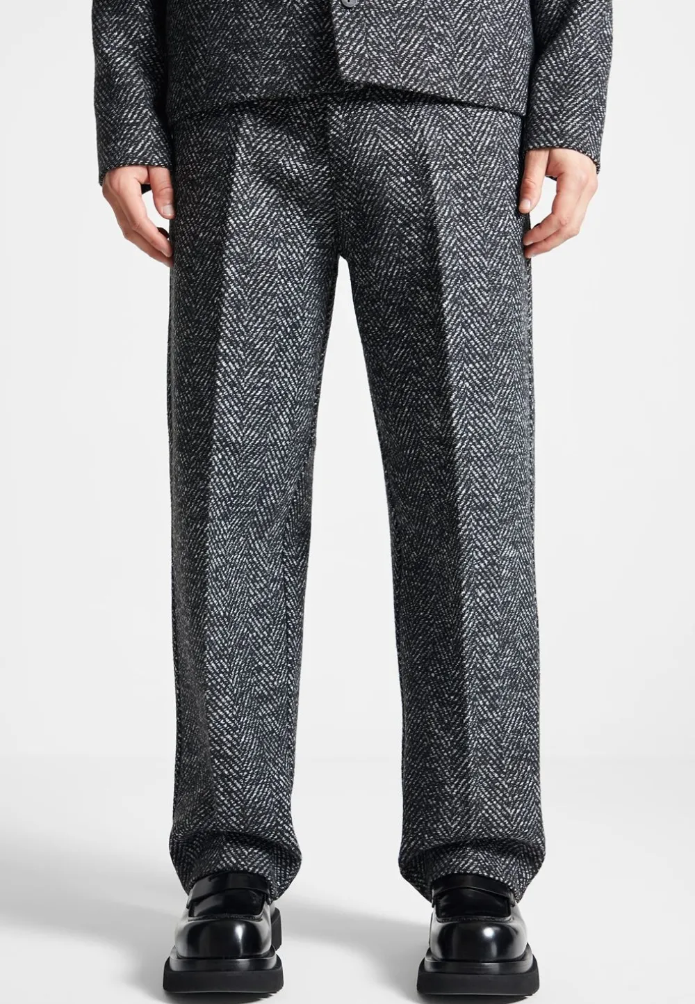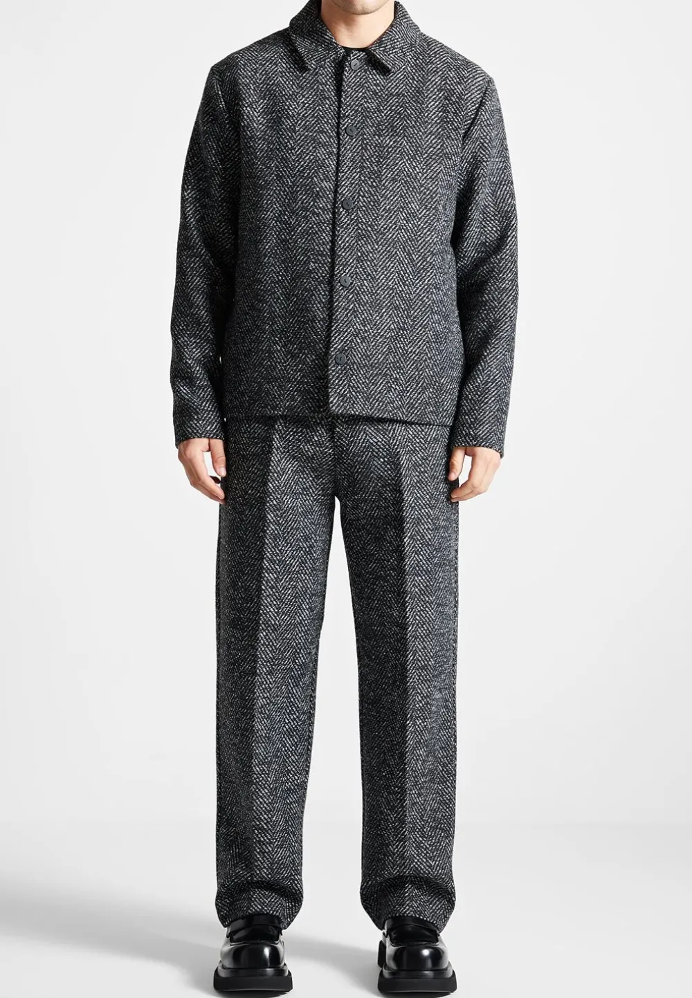 Crafted From Premium Fabrics, These Sophisticated Herringbone Trousers Are Perfect For Many Occasions. With Classic Herringbone Detailing, These Trousers, When Paired With The Matching Brushed Herringbone Shacket, Make For A Modern Tailored Look.