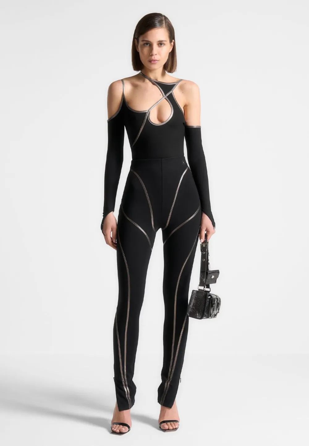 Expertly Designed For The Ultimate Slimming Effect, Our Chrome Piped Contour Leggings Feature Contour Lines And A High Waist For A Flattering Fit. Made With A Unique Design, These Leggings Offer Both Style And Functionality. Stay On-Trend And Comfortable With These Figure-Enhancing Leggings.