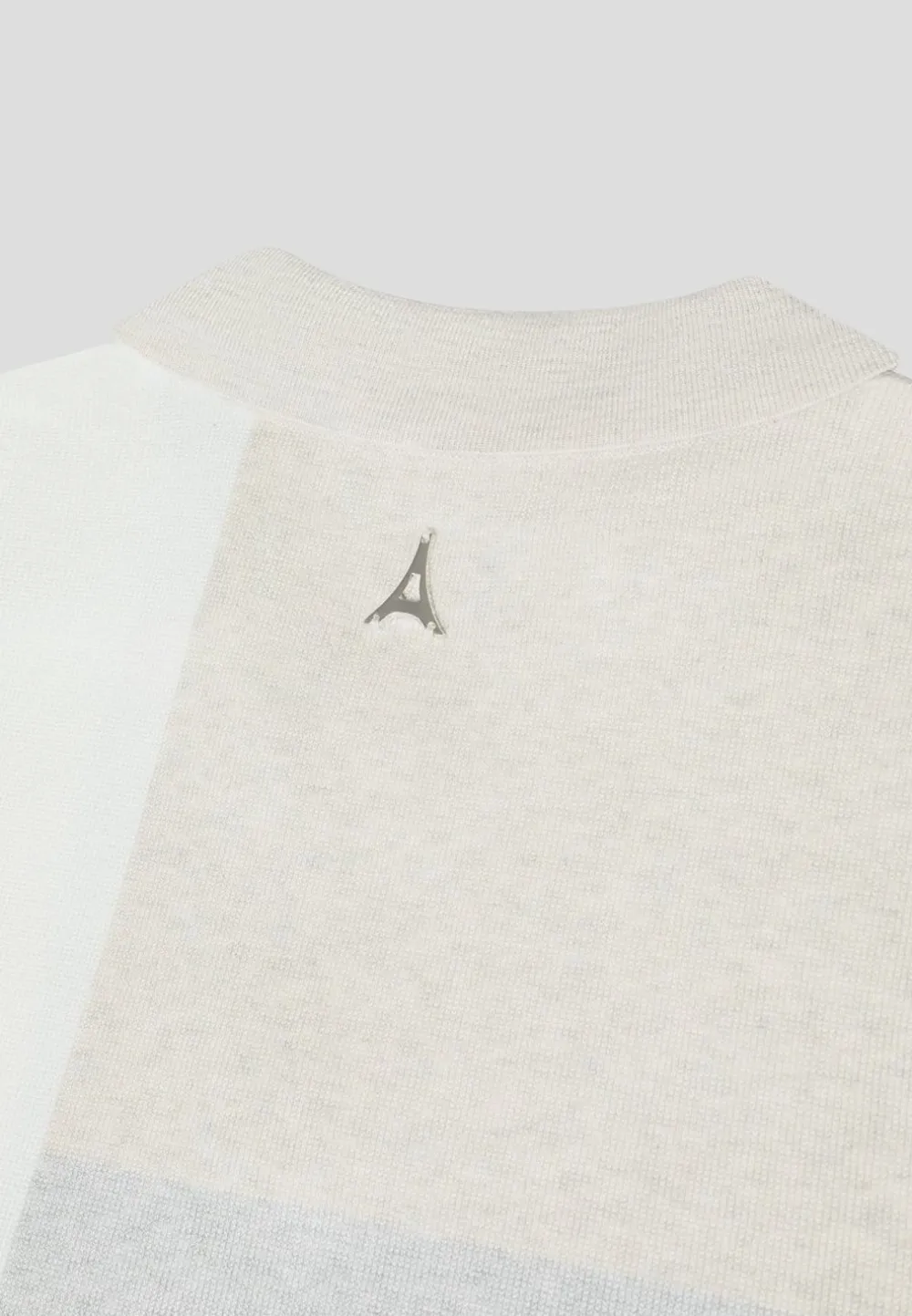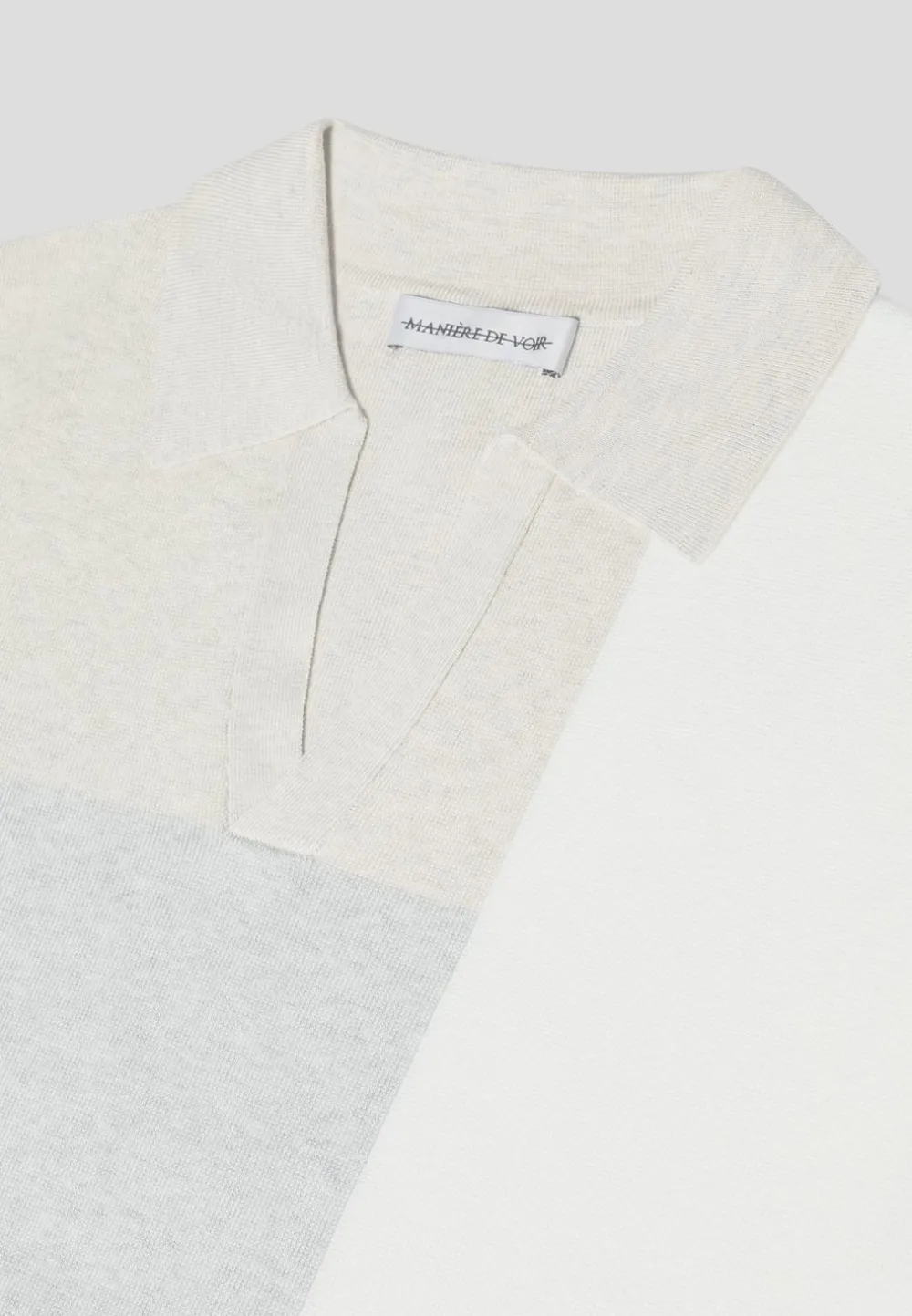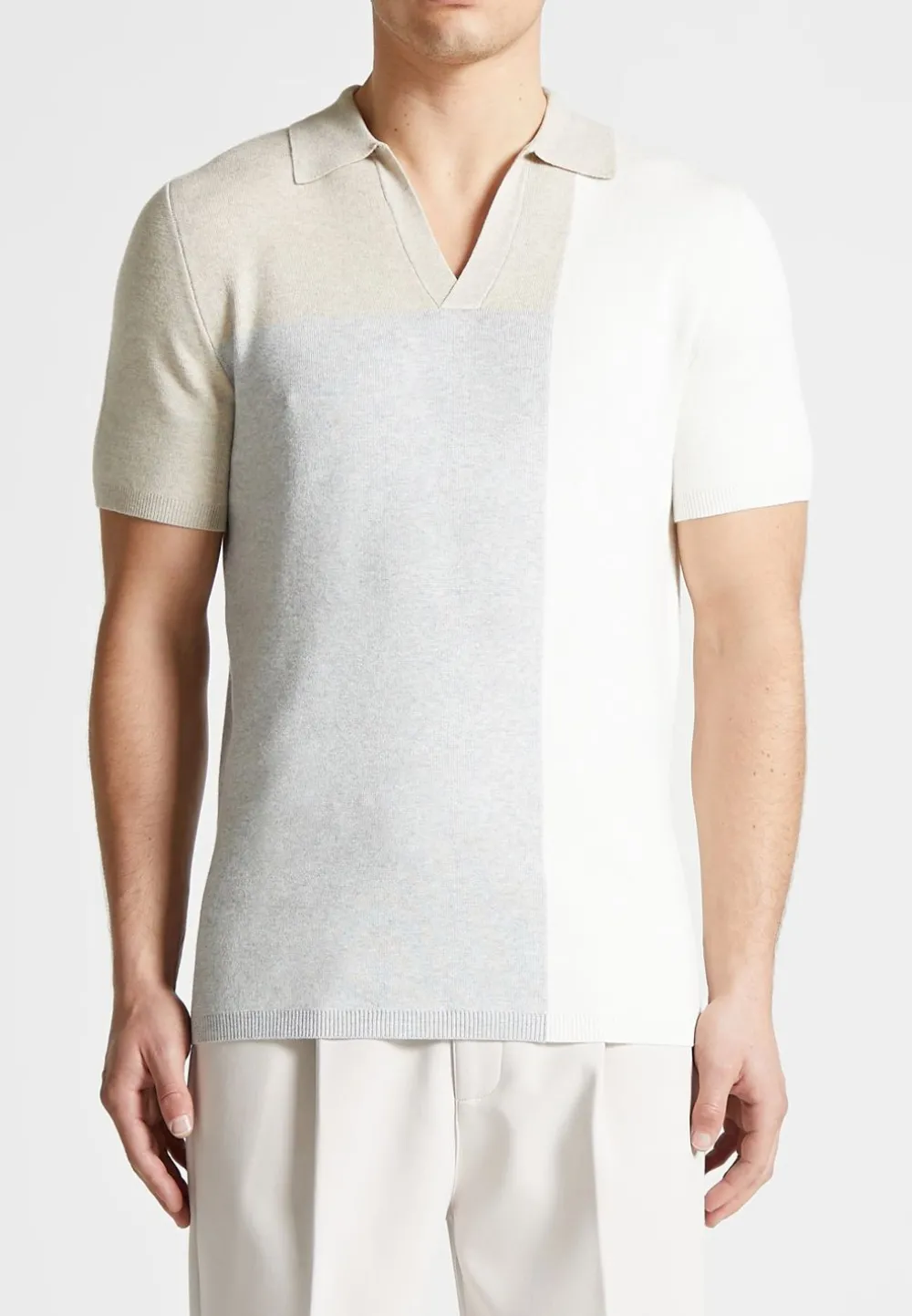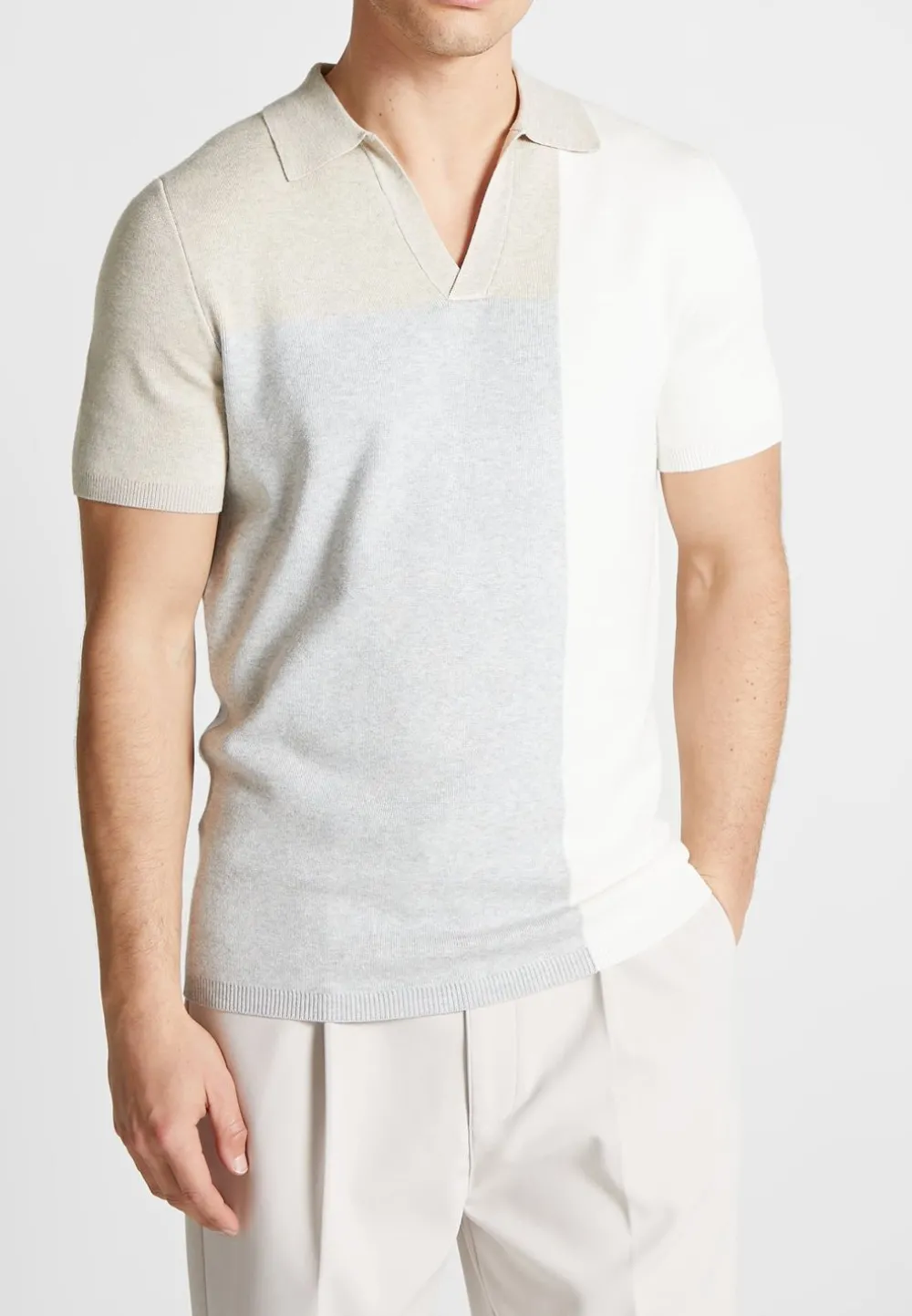 This Beige And Grey Colour Block Knit Revere Polo Top Is A Stylish Addition To Any Outfit. Featuring A Classic Polo Top Style And Colour Block Accents, This Piece Is Perfect For Any Casual Or Smart-Casual Occasion. The Breathable And Lightweight Material Provides All-Day Comfort.