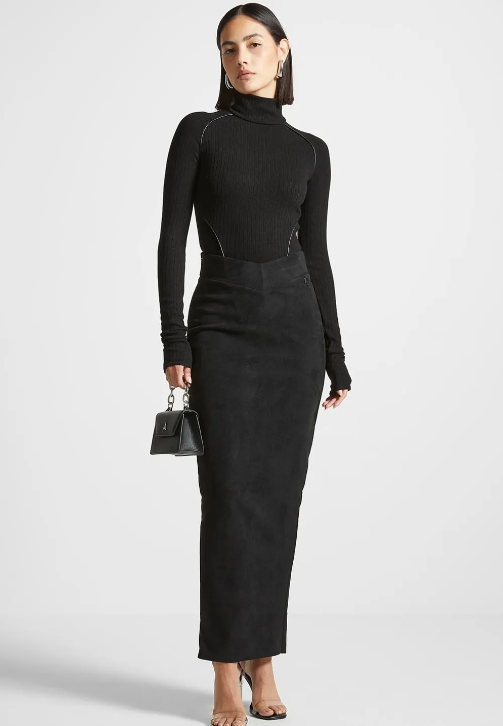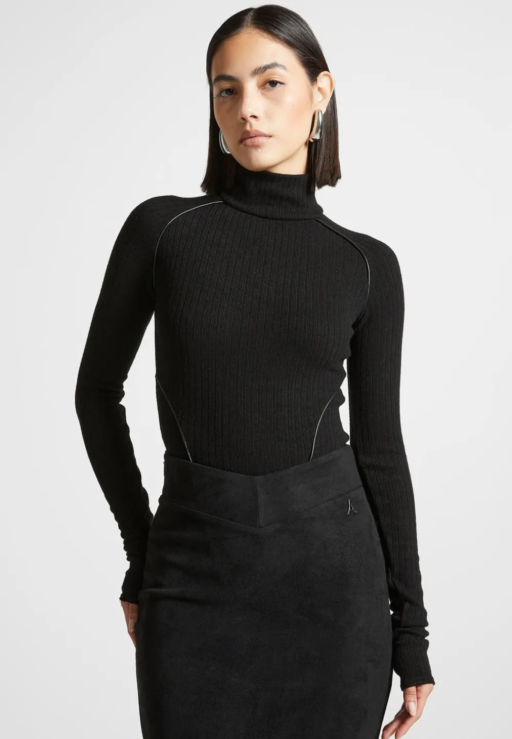This Rib Bodysuit Is Made From Lightweight Fabric And Features A High Neckline And Unique Contour Detailing For An Elevated Look. Perfect For Any Occasion, This Classic Piece Is Sure To Become A Wardrobe Staple.