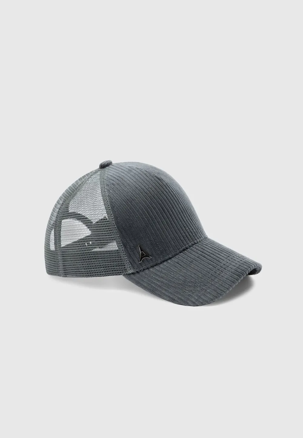 Elevate Your Casual Ensemble With Our Corduroy Trucker Cap In Steel Blue. Crafted From Durable Fabric And Accented With A Contrasting Mesh Design, It’s An Ideal Accessory For Any Outfit. Complete With A Snap Fastening And Silver-Toned Hardware, It Effortlessly Combines Style With Comfort.