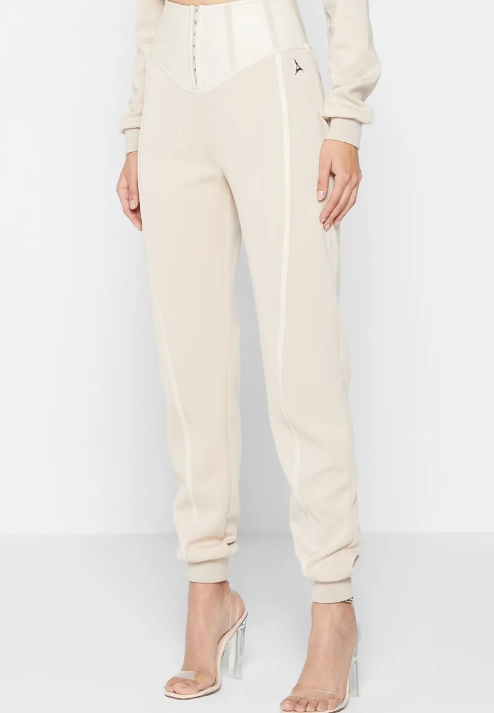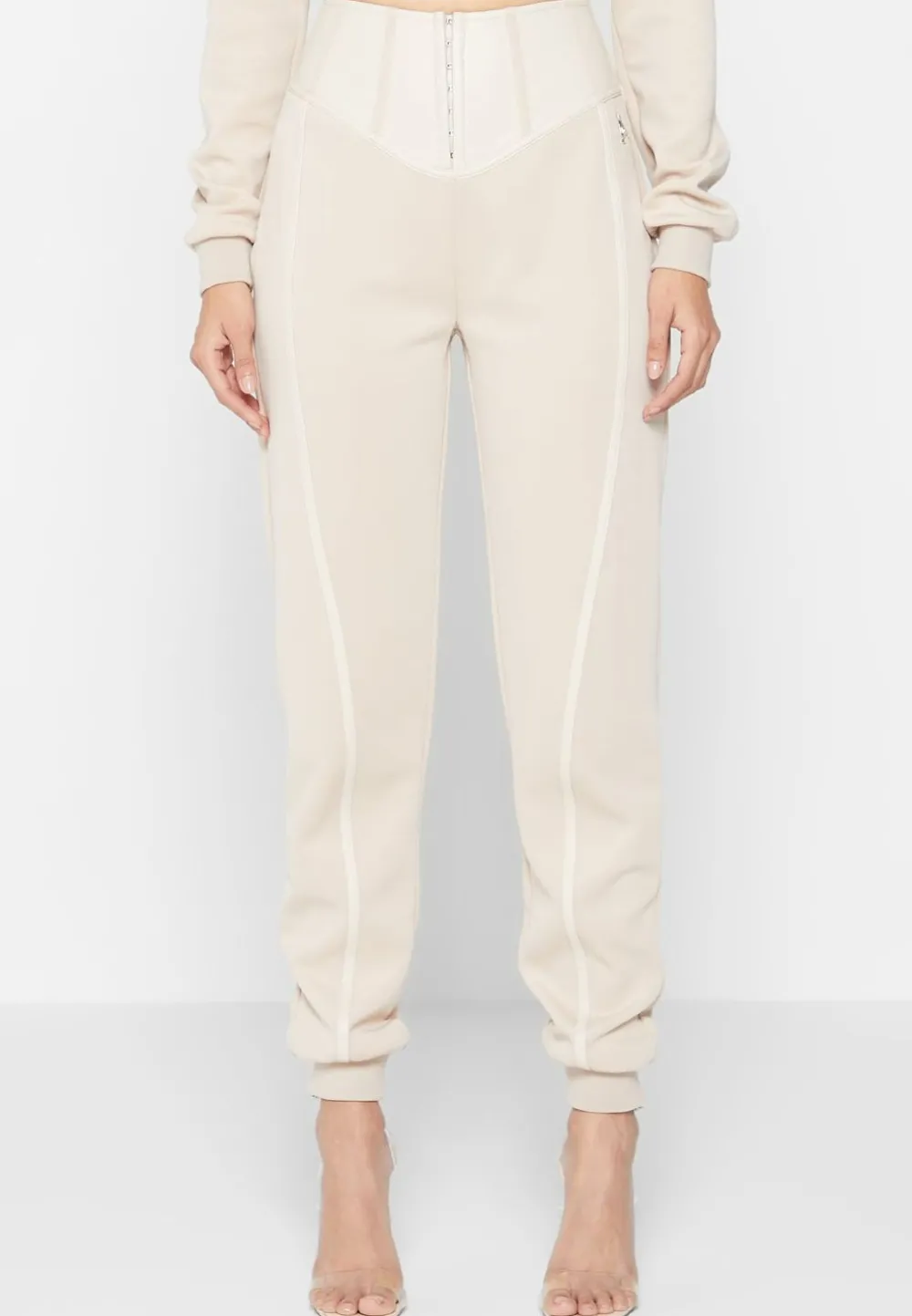In Soft Neoprene Fabric With Luxurious Vegan Leather Piping, This Tracksuit Can Be Worn Day Or Night. Featuring Corset Detailing, This Outfit Can Be Styled With Heels Or Sneakers To Suit Your Preference.