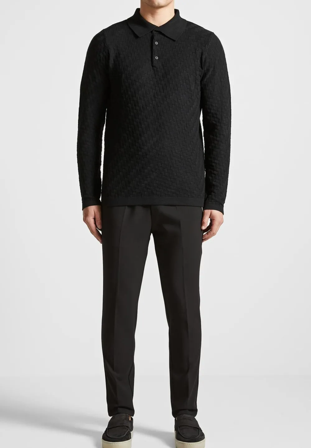 This Cotton Blend Waffle Knit Long Sleeve Polo Top Is Made Of A Soft, Breathable Blend Of Cotton With A Waffle-Patterned Knit. Its Classic Silhouette And Lightweight Fabric Can Be Worn For Both Casual And Formal Occasions.