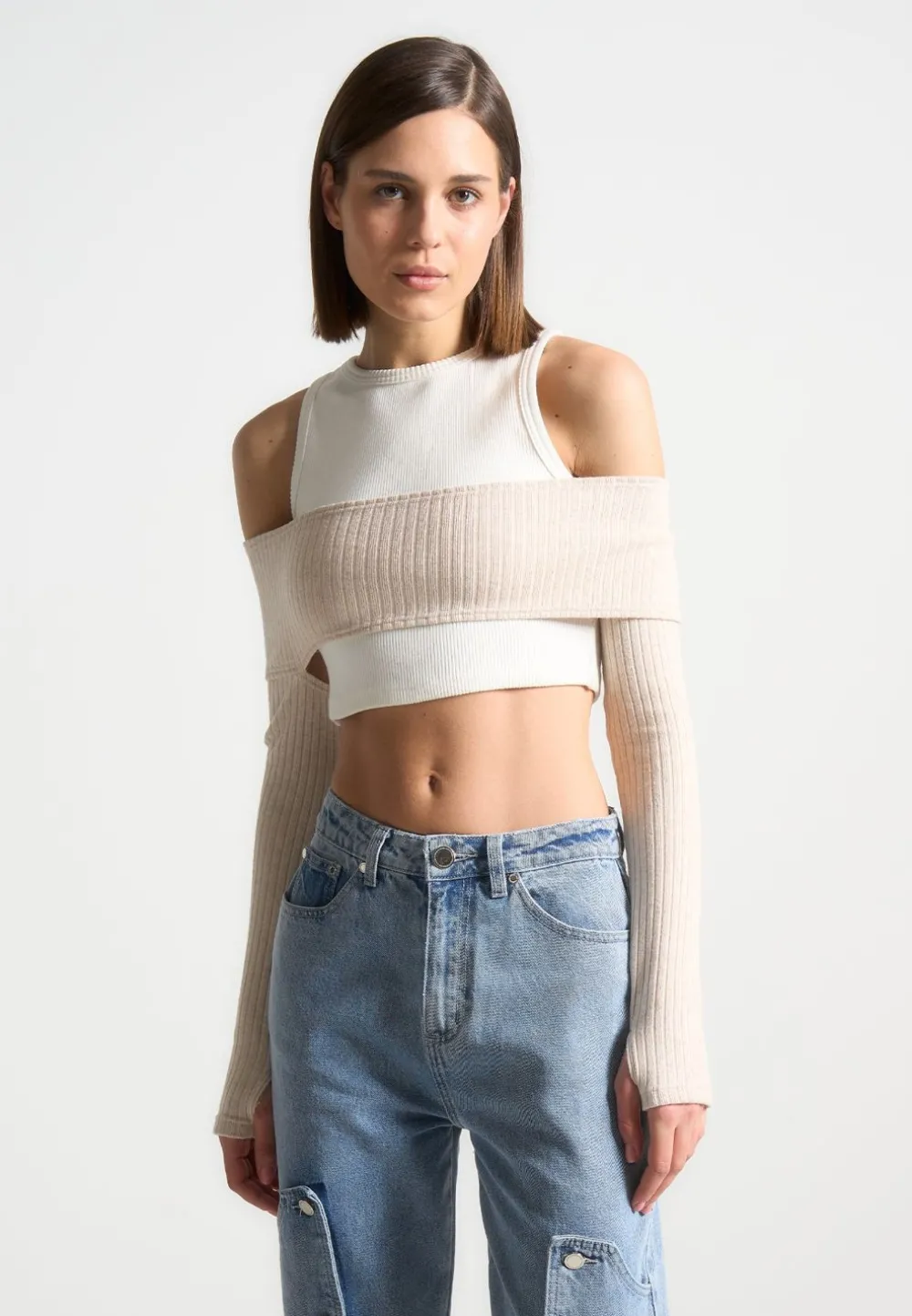 This Top Can Be Styled With Cargos And Sneakers Or Jeans And Heels, The Perfect Day To Night Staple Piece. The Knitted Overlay Can Be Removed To Suit Any Preference.