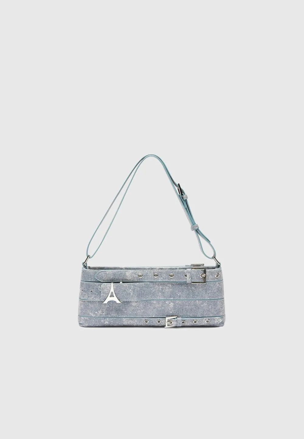 Keep Your Daily Essentials Stylishly Close With This Denim Effect Eiffel Belt Bag. Featuring Multi Belt Strap Detailing, This Bag Is Designed To Provide Comfort And Convenience. It’s The Ideal Accessory For Any Wardrobe.