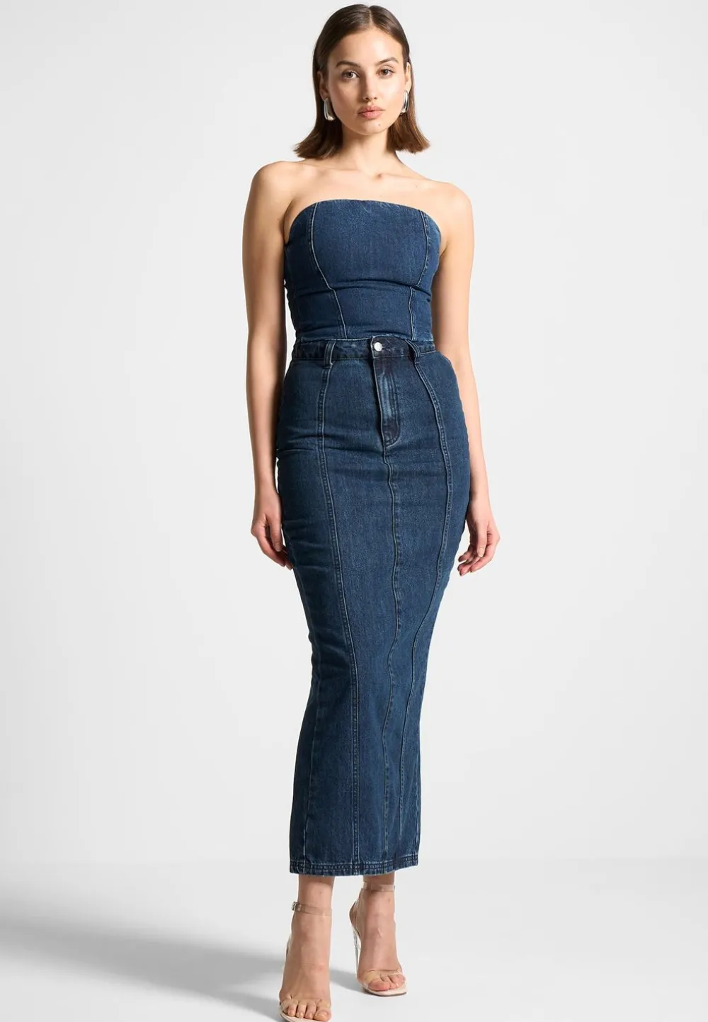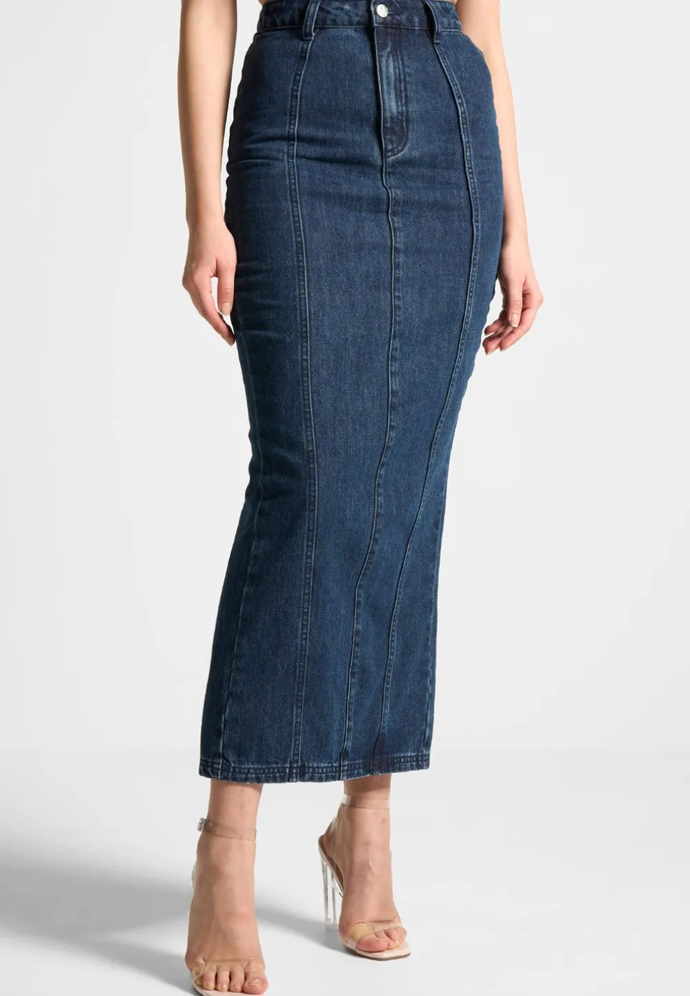 This Denim Midaxi Skirt In Indigo Is Crafted From Premium Denim Fabric For A Durable And Stylish Look. Its Contour Detailing And Slit Add A Sophisticated Edge To This Classic Skirt. An Ideal Choice For Those Seeking To Bring A Modern, Timeless Look To Their Wardrobe.