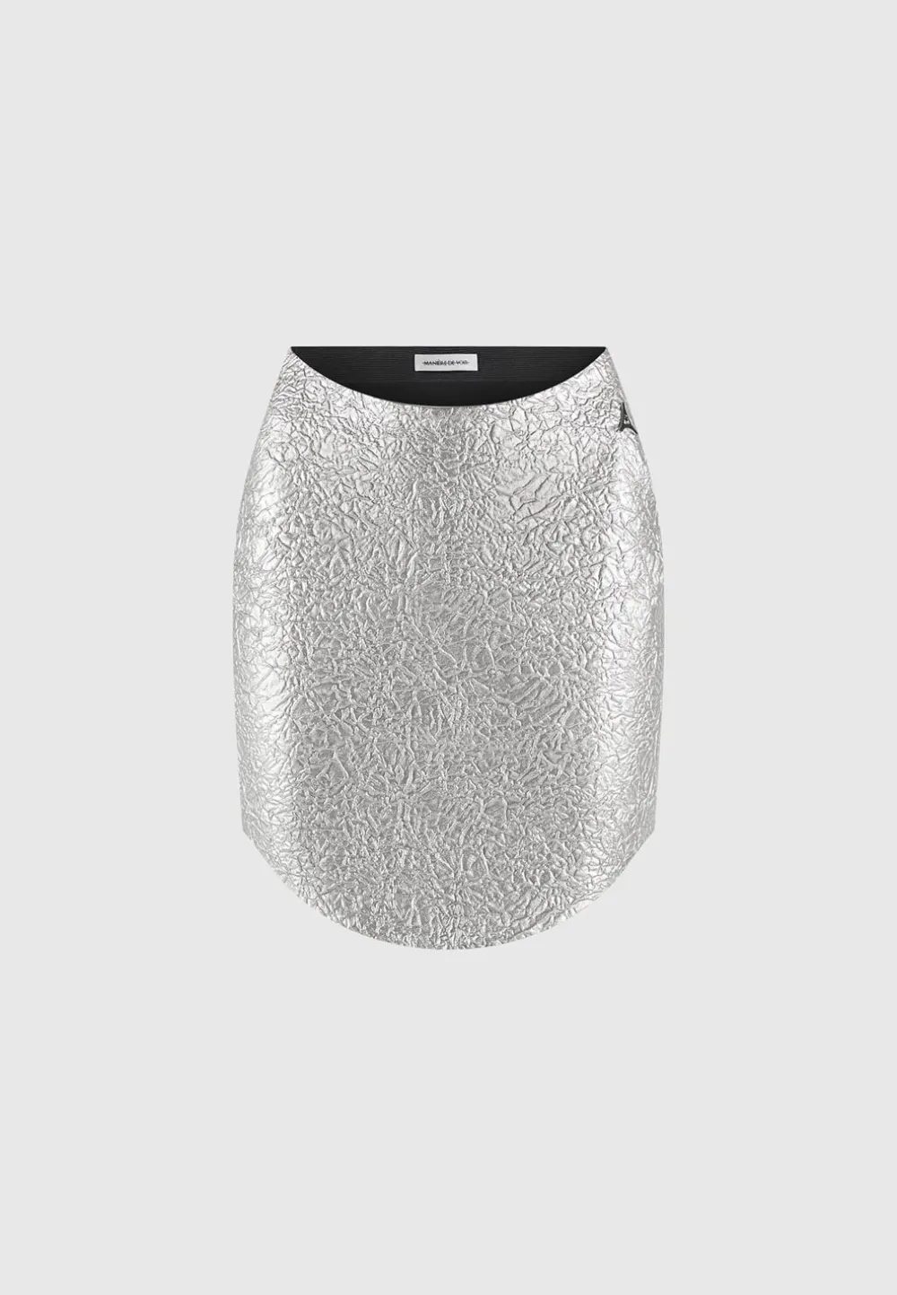 This Dipped Waist Metallic Mini Skirt Boasts A Unique Shape And A Subtle Sheen. The Classic Shape And Cool Grey Colour Make This An Ideal Choice For Formal Or Casual Occasions. Showcase Your Style With This Fashionable And Comfortable Skirt.