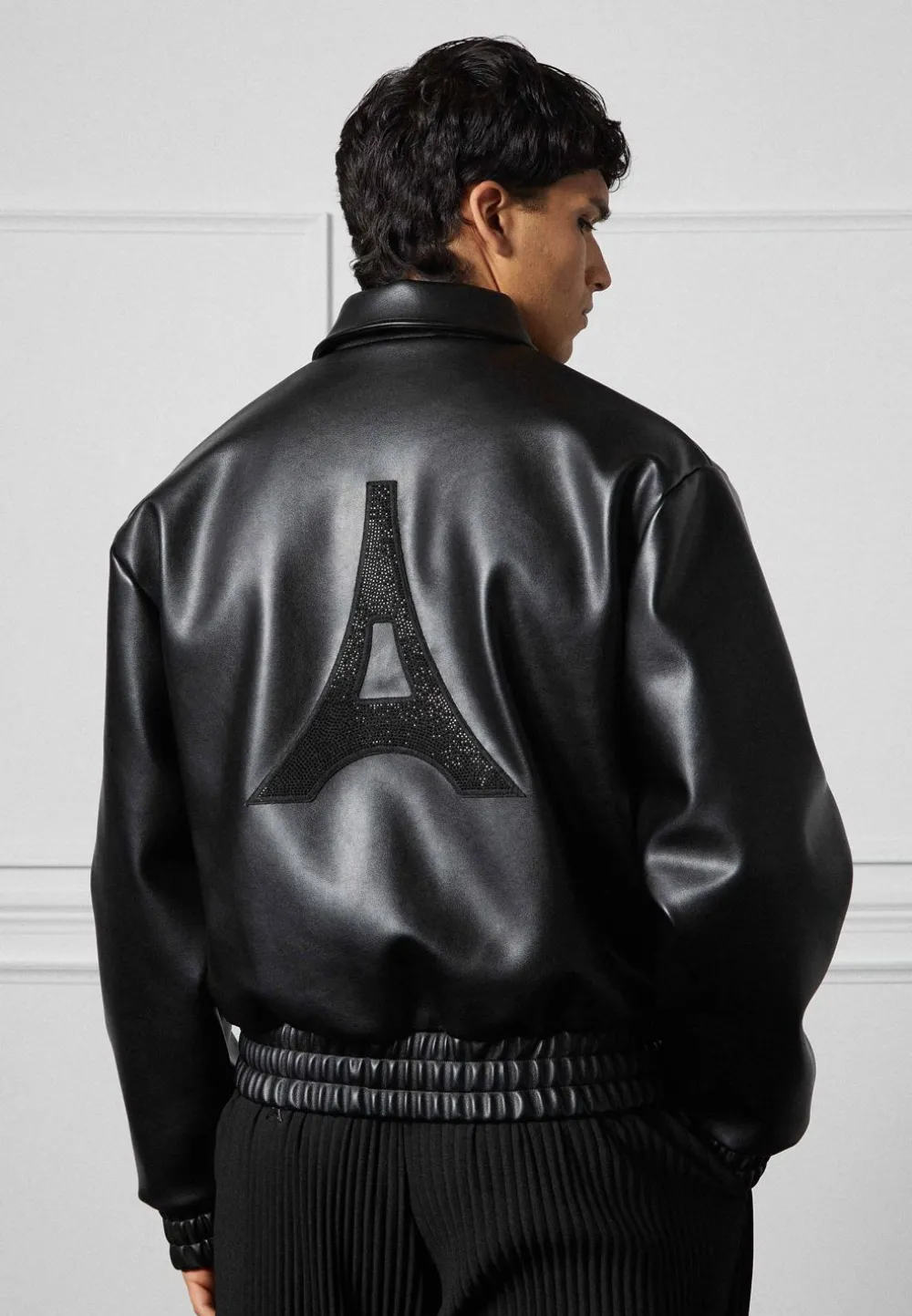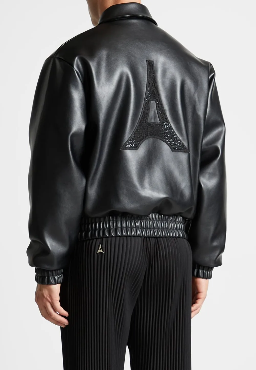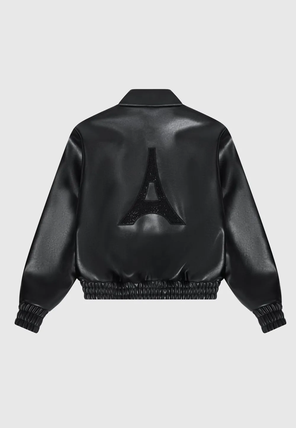 Elevate Your Wardrobe With This Eiffel Rhinestone Varsity Jacket. Crafted With Vegan Leather And Featuring A Rhinestone Embellished Eiffel Patch On The Back, It Is Sure To Add Quality And Luxury To Any Look.