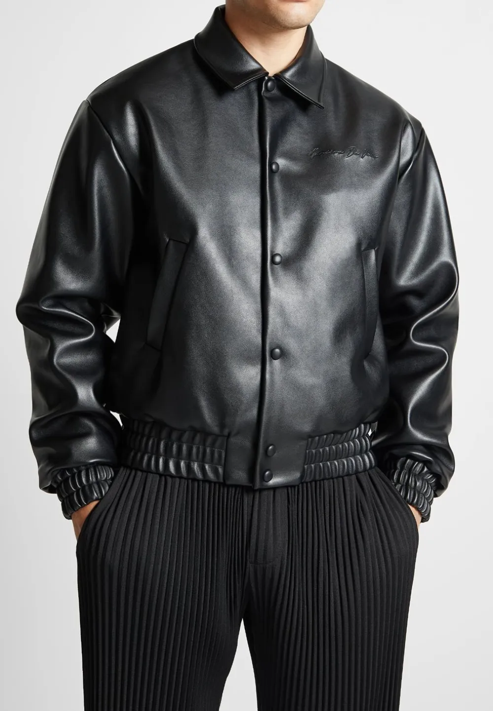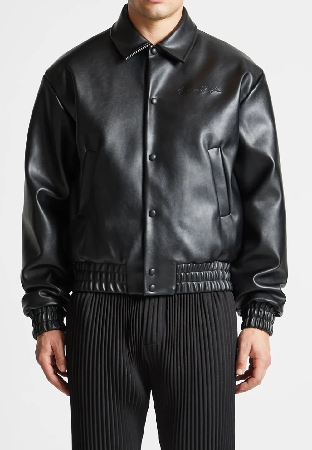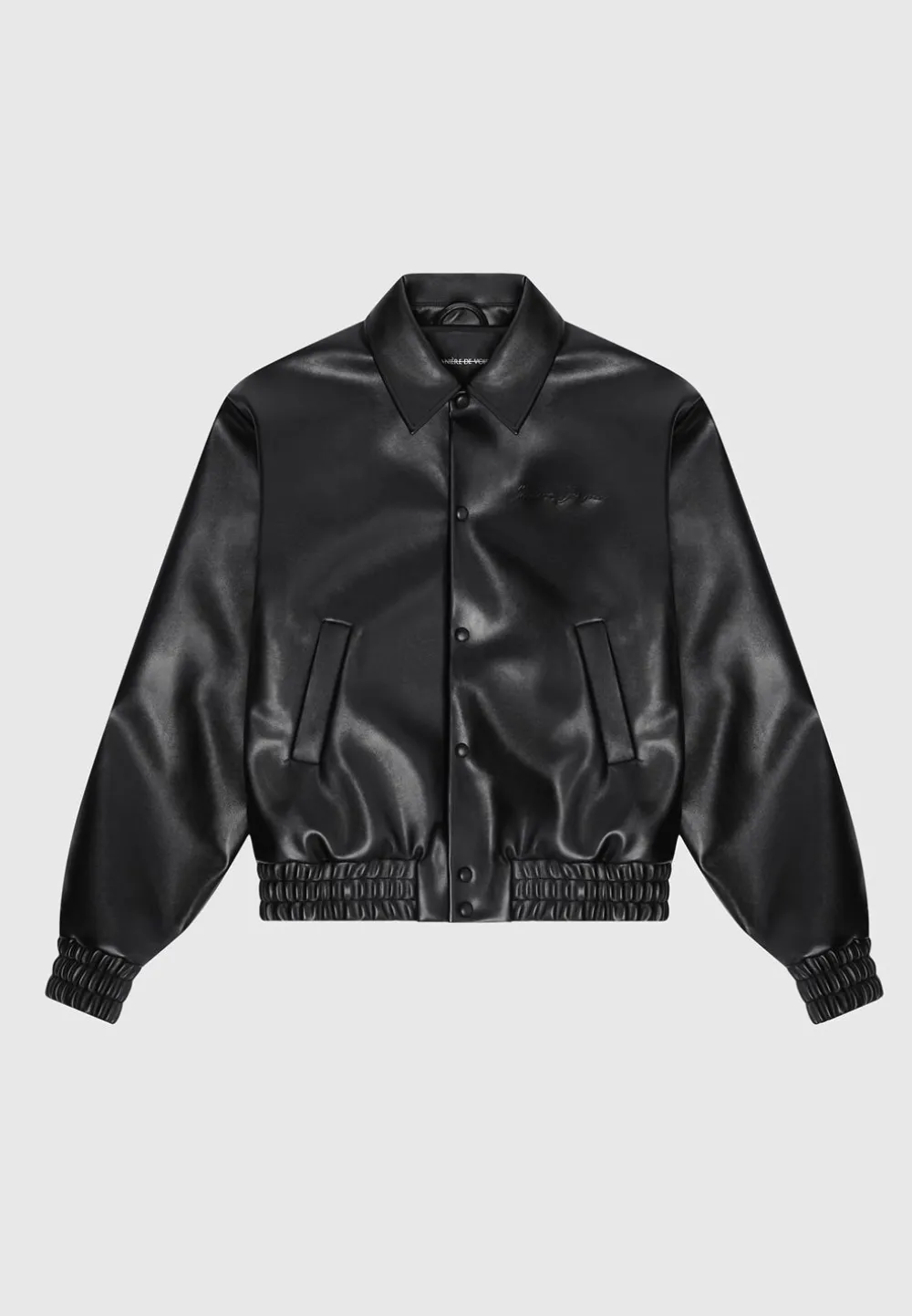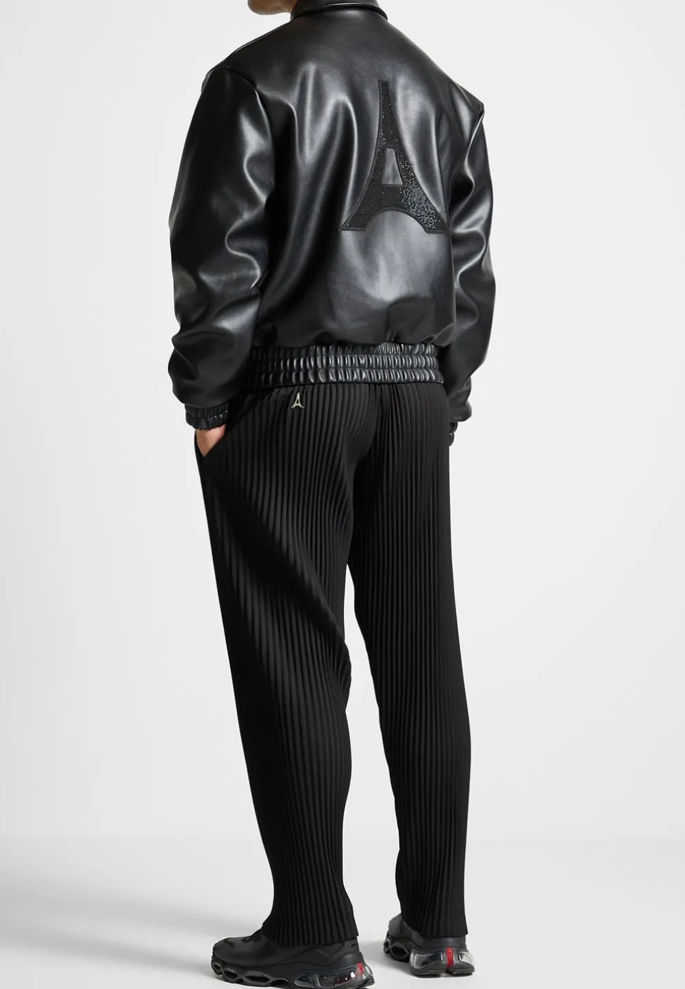 Elevate Your Wardrobe With This Eiffel Rhinestone Varsity Jacket. Crafted With Vegan Leather And Featuring A Rhinestone Embellished Eiffel Patch On The Back, It Is Sure To Add Quality And Luxury To Any Look.