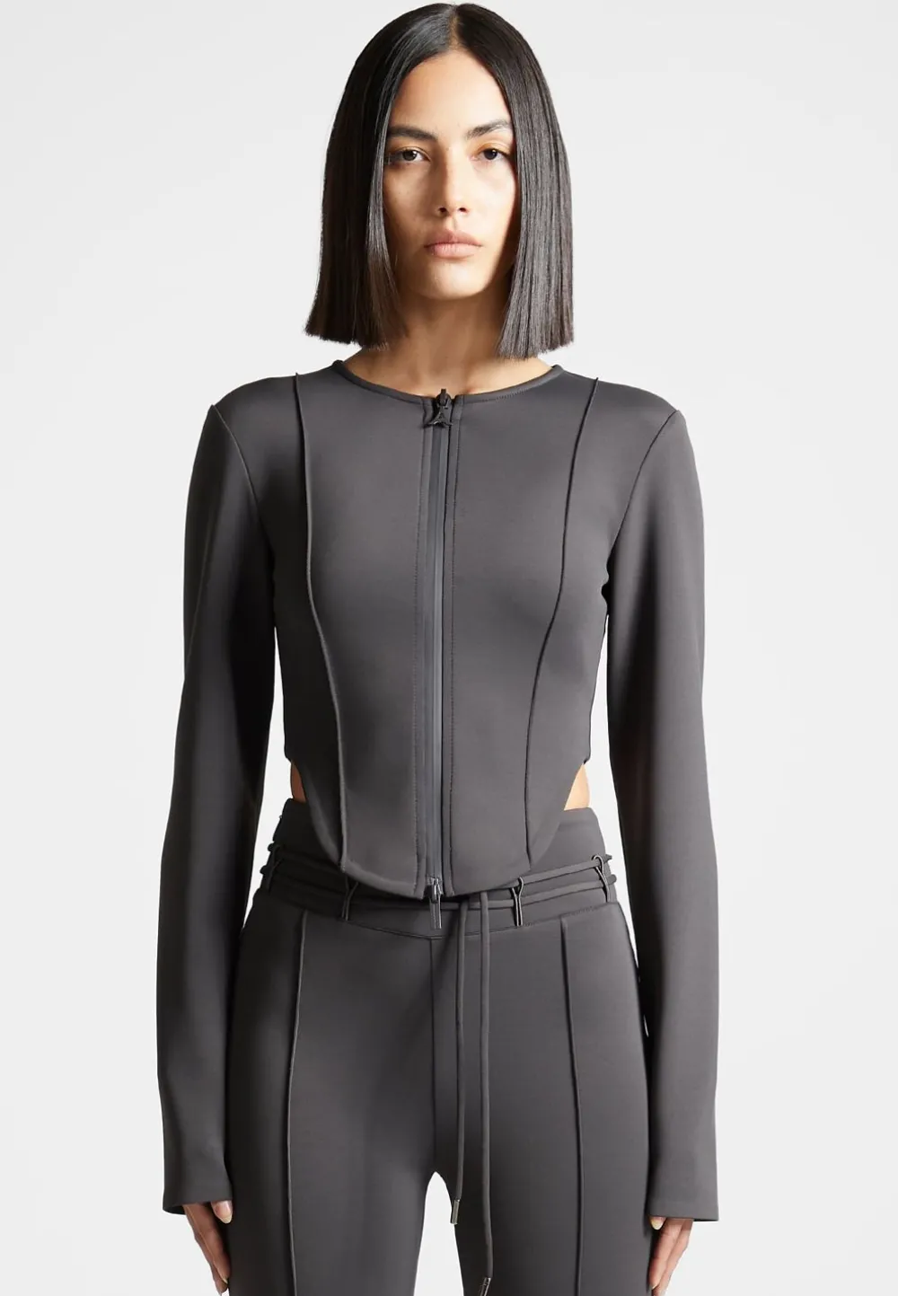 This Neoprene Corset Jacket Adds A Figure-Flattering Silhouette To Any Look, All While Providing Lightweight Comfort. The Slim-Cut Shape Complements Any Body Type, Allowing You To Make A Bold Style Statement. With Its Fashionable Design, This Jacket Is Perfect For Any Occasion.