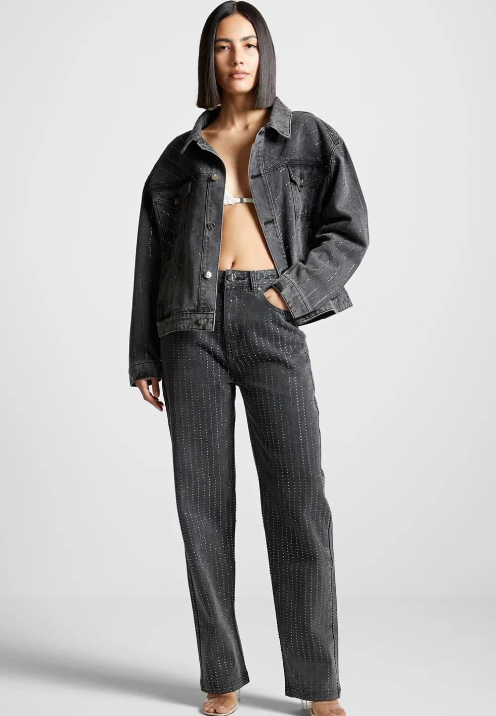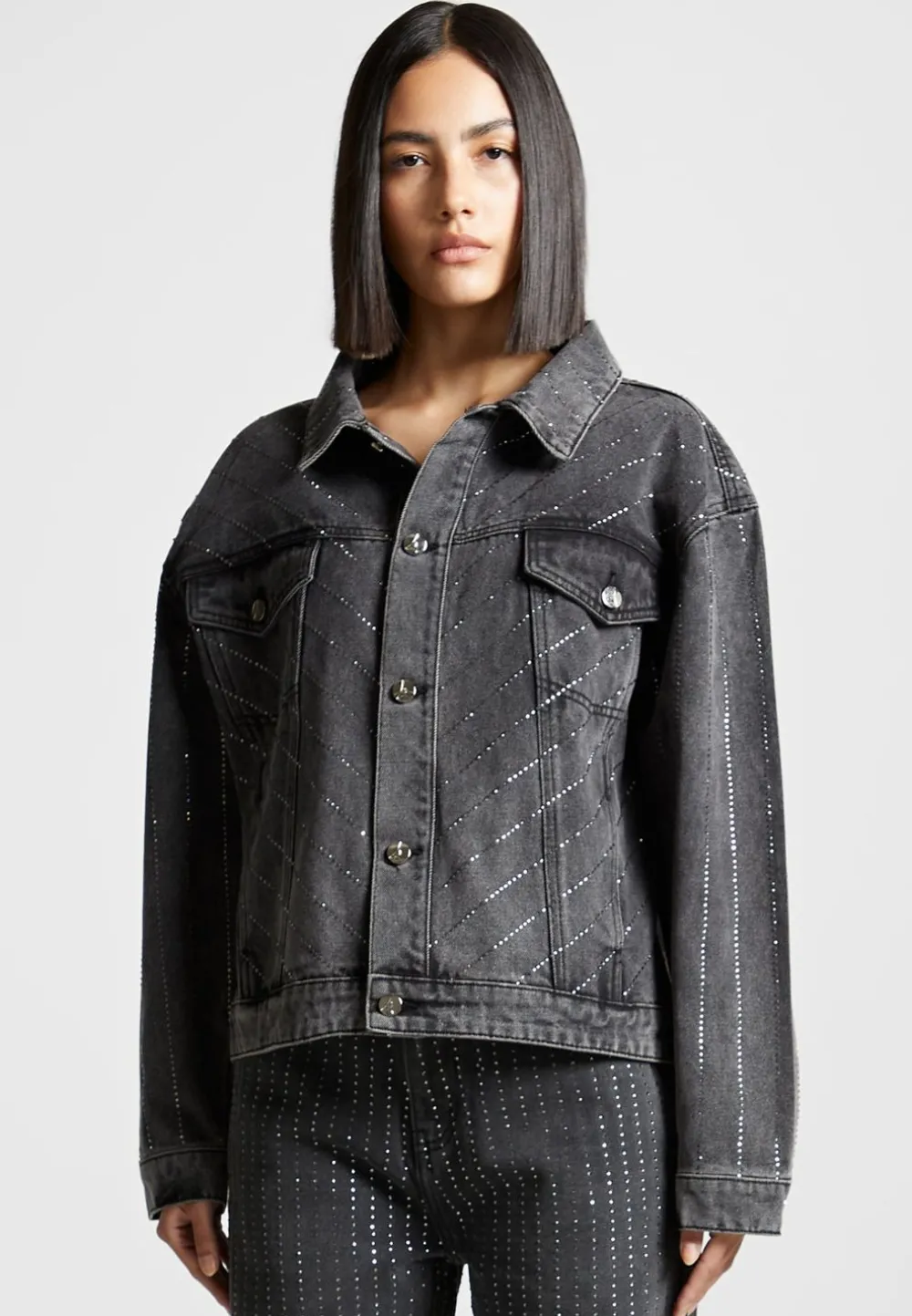 Add A Little Sparkle To Any Outfit With This Oversized Rhinestone Denim Jacket. Perfect For Casual Or Special Occasions, Its Timeless Silhouette And Glittering Accents Will Help You Stand Out And Make A Statement. Soft And Comfortable, Its Oversized Fit Allows You To Dress It Up Or Down For Any Occasion.