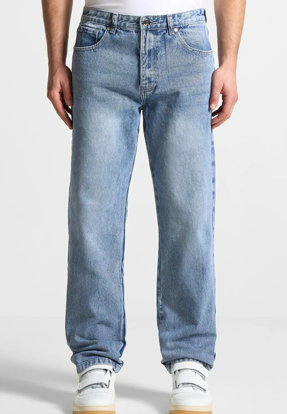 Designed For Comfort And Style, Our Relaxed Fit Jean In Washed Blue Offers A Relaxed Fit For Easy Movement. Made From High-Quality Denim, These Jeans Provide A Comfortable And Versatile Option For Everyday Wear.