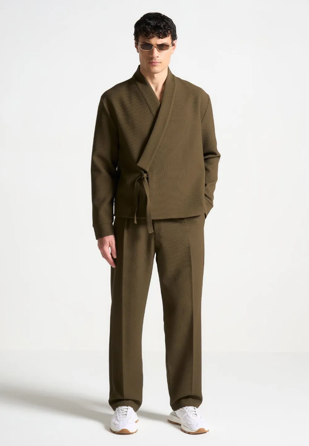 Enhance Your Wardrobe With Our Textured Belted Tailored Trousers. Designed With A Relaxed Fit And A Pleat To Crease Detail, These Trousers Seamlessly Blend Comfort And Style. Perfect For Any Occasion, These Trousers Are A Versatile Essential To Any Wardrobe.