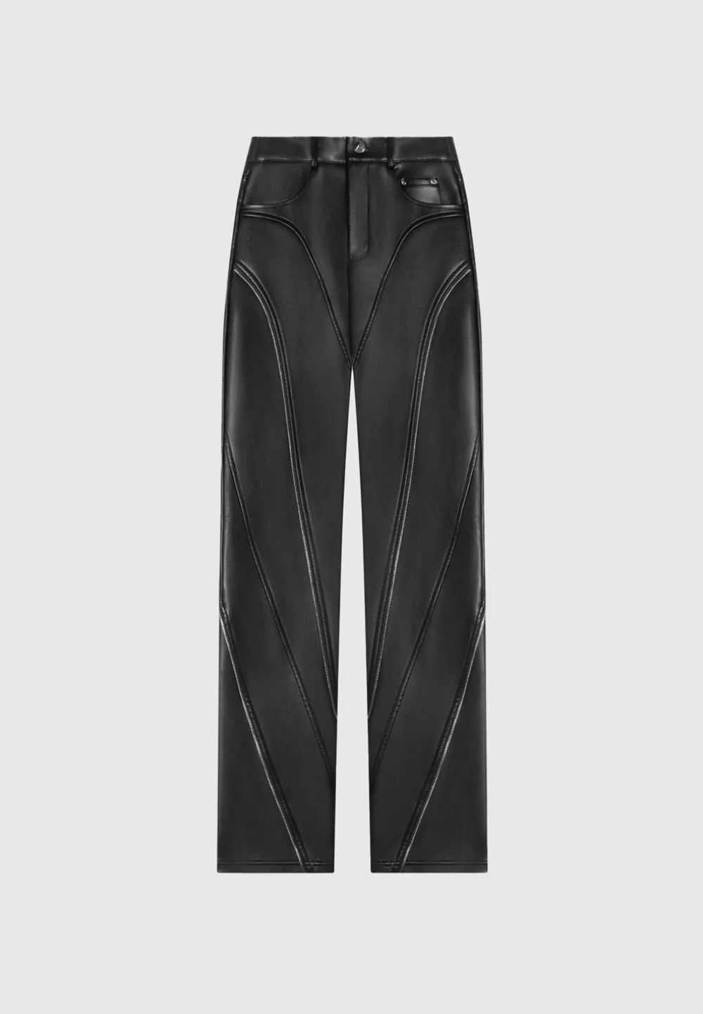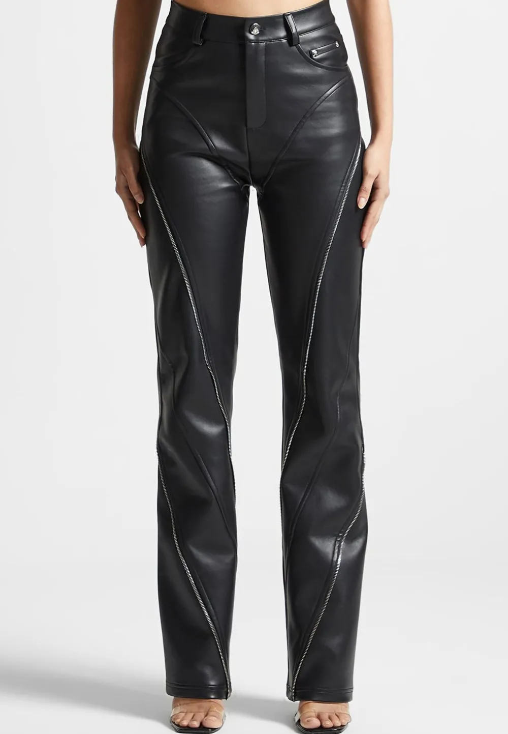 These Edgy Vegan Leather Biker Trousers With Zips Are Perfect For Day-To-Night Styling. Their Sleek Straight Leg Make Them Both Cool And Versatile, Perfect For Any Wardrobe. Crafted From Premium Materials, These Trousers Are A Sustainable And Ethical Choice.