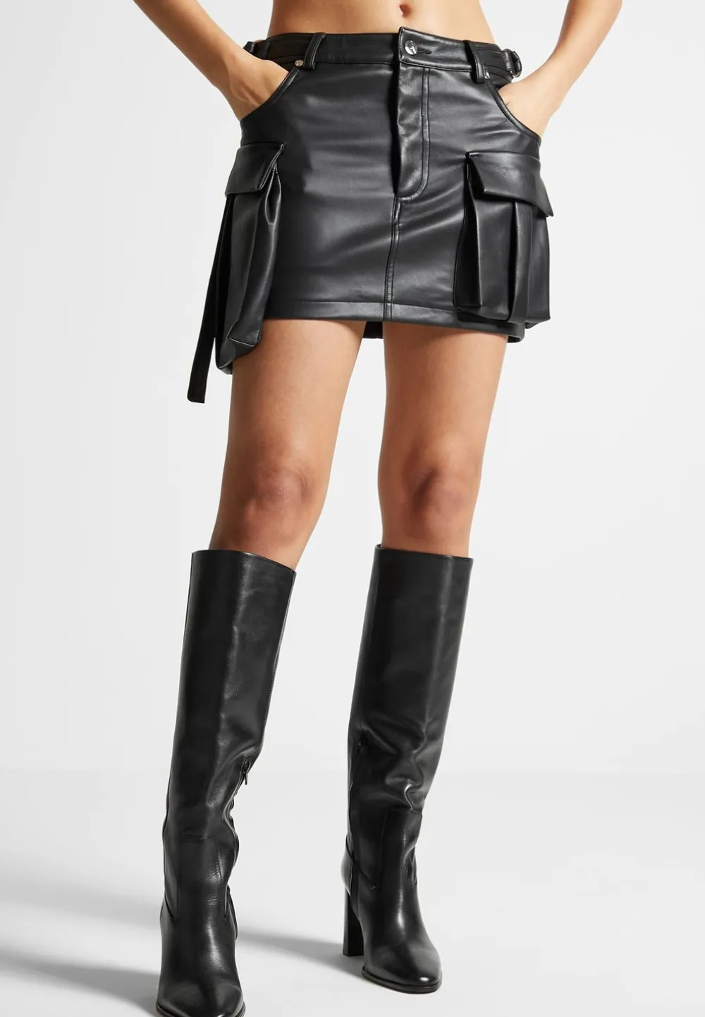 Our Vegan Leather Cargo Mini Skirt Is Perfect For A Day To Night Look. Featuring An Edgy Design And Flattering Fit, This Piece Will Make Any Outfit Stand Out. Crafted From Vegan Leather, This Skirt Is Sure To Impress.