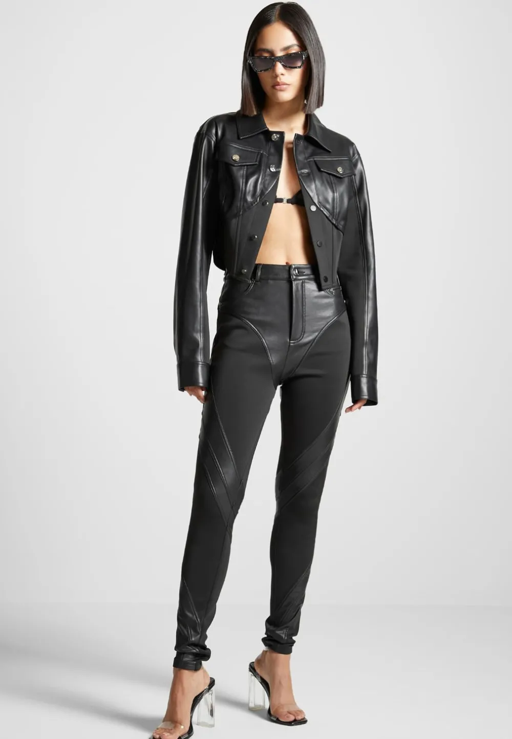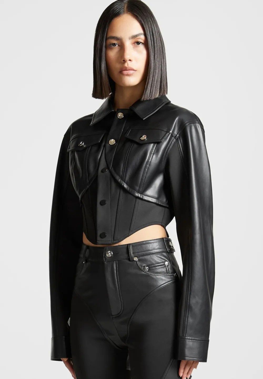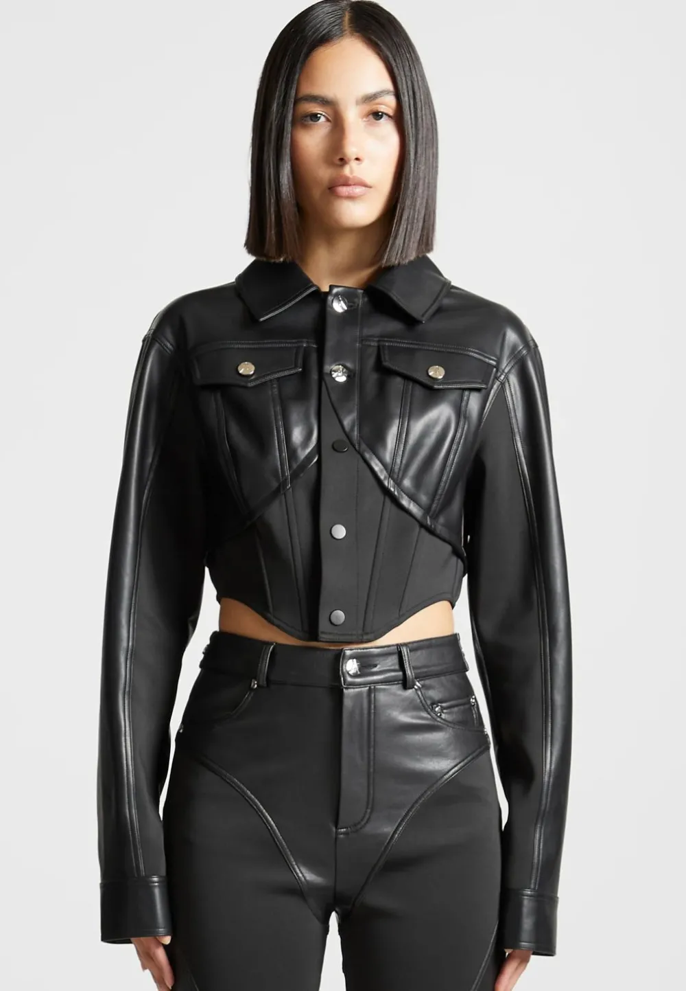 Show Off Your Unique Style With The Vegan Leather Contour Jacket. Its Contour Detailing And Sleek Design Create A Must-Have Look For Any Wardrobe. This Leather Jacket Is Sure To Become A Classic Favourite.