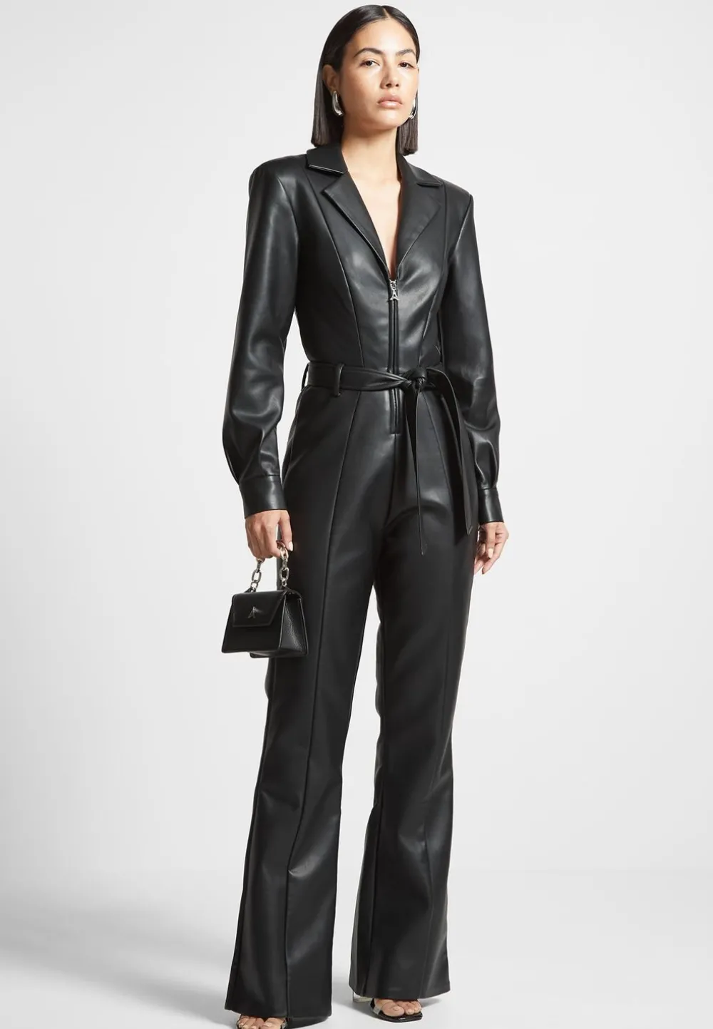 This Stylish Jumpsuit Offers A Tailored Fit And Flare Leg Silhouette To Give You An Effortlessly Chic Look. Made With Vegan Leather, You’Ll Look Fabulous While Still Being Conscious Of Your Fashion Choices.