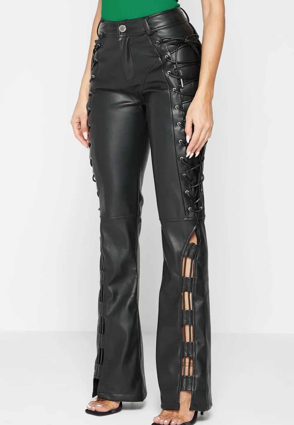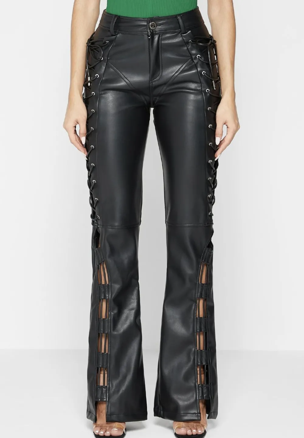 In A Flattering Cut, These Trousers Perfectly Accentuate And Lift. The Lace Up At The Sides Are Fully Adjustable So You Can Adjust These To Make These Trousers A Custom Fit To You. Please Ensure The Lace Ups Are Loosened Before Wearing To Avoid Them Snapping Whilst Putting The Trousers On.
